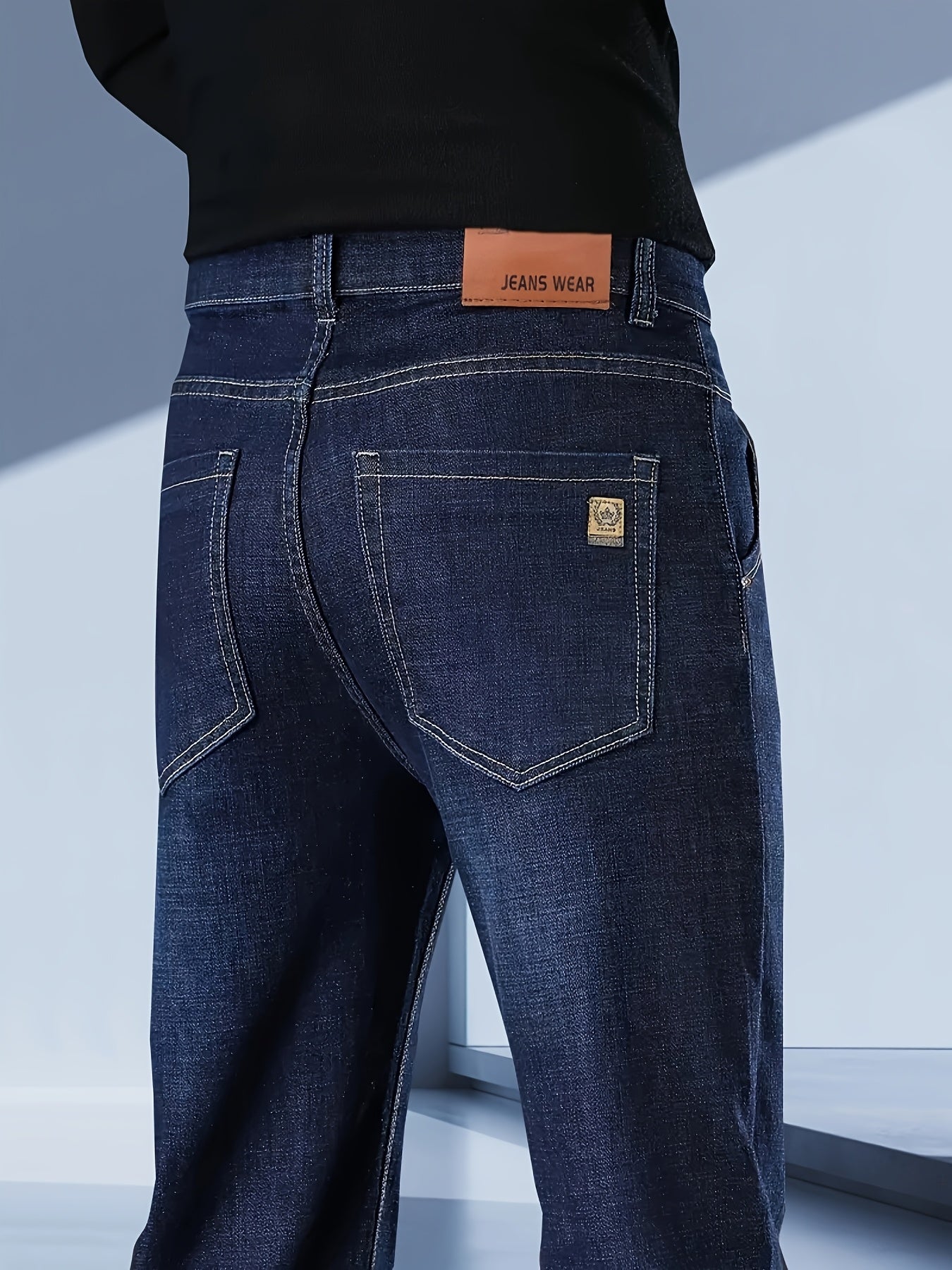 Men's Regular Fit Cotton Blend Jeans Solid Washed Denim All-Season