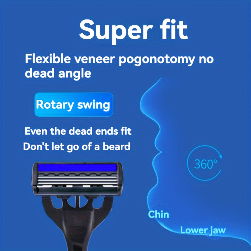Men's Safety Razor with 3-Blade System, Metal Handle, Includes Replacement Blades