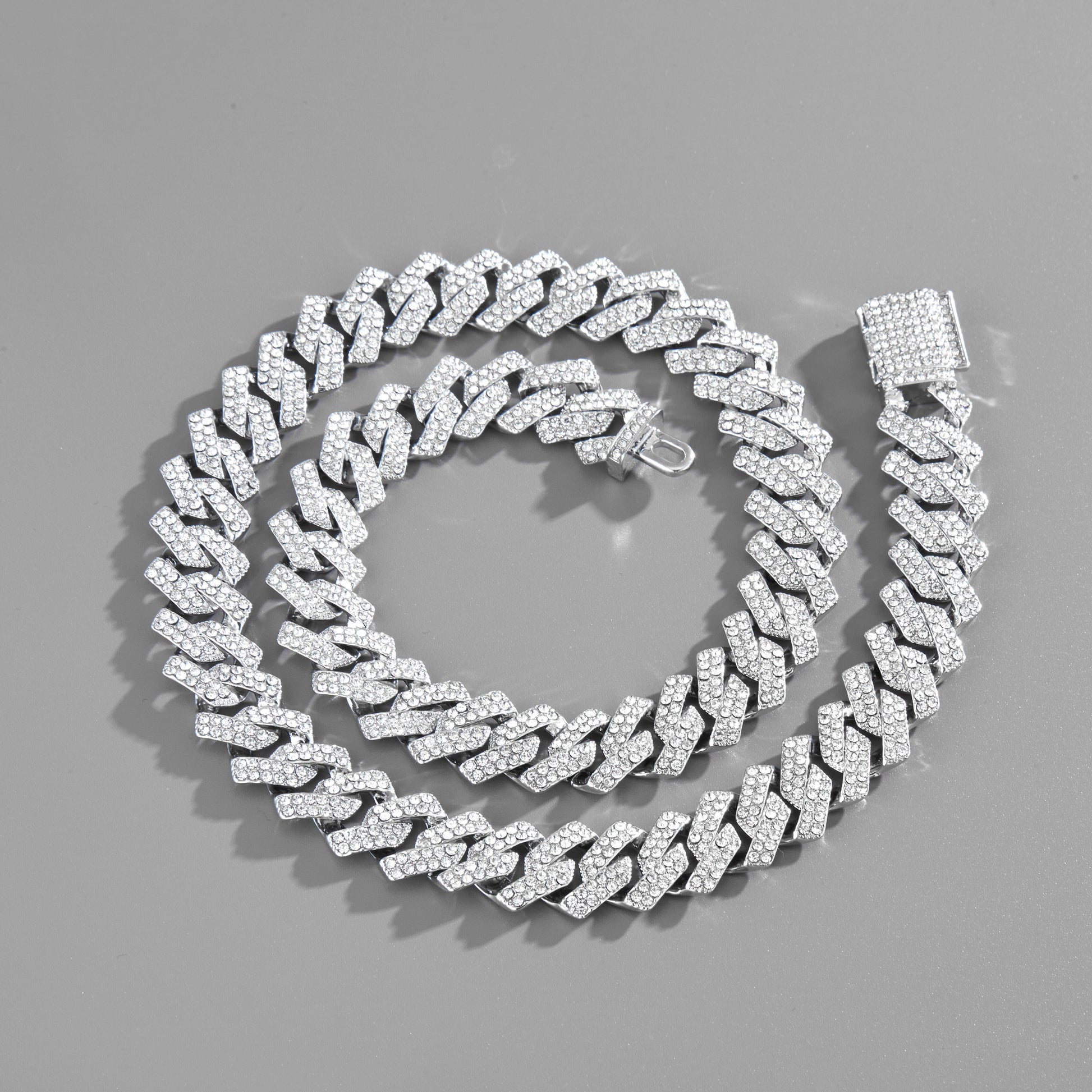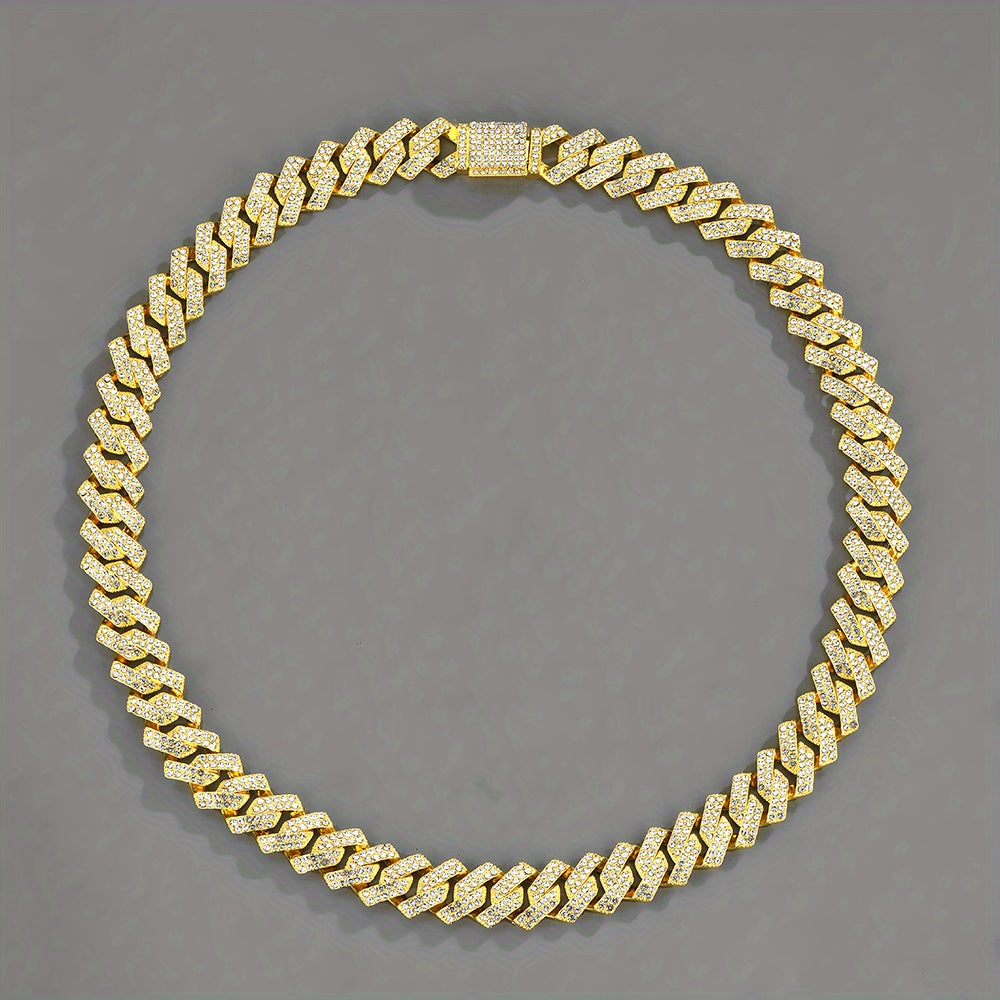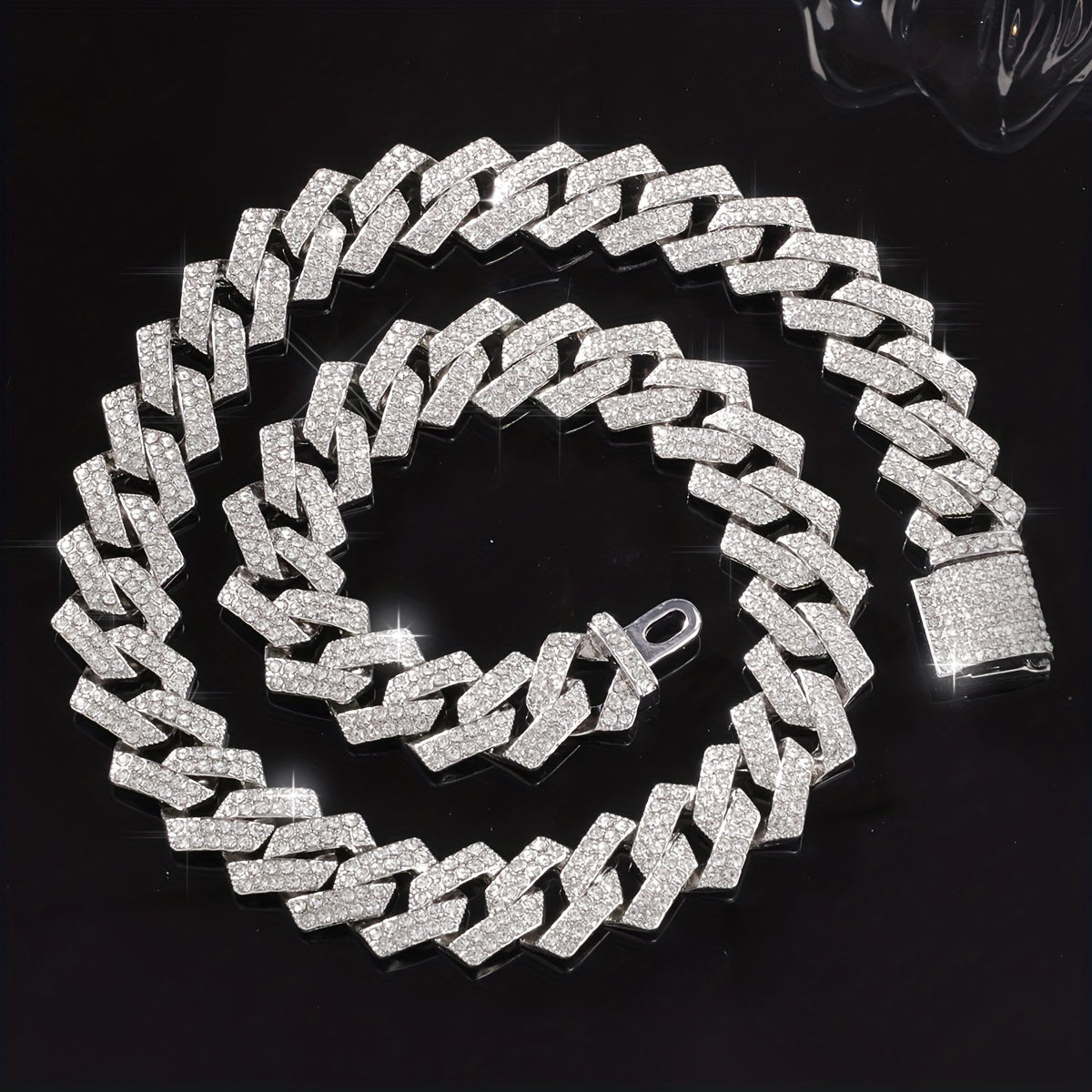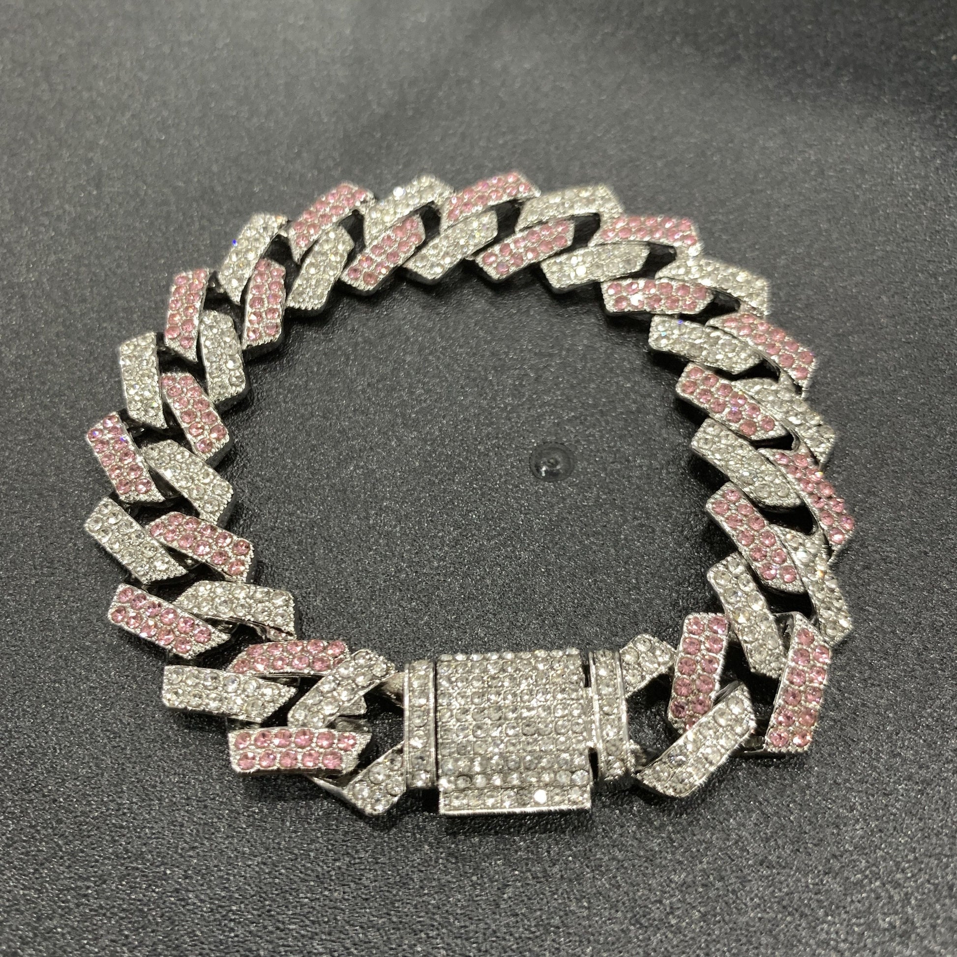 Men's Silver Pink Blue Cuban Link Chain Iced Out Lab Faux Diamonds Miami Necklace Choker