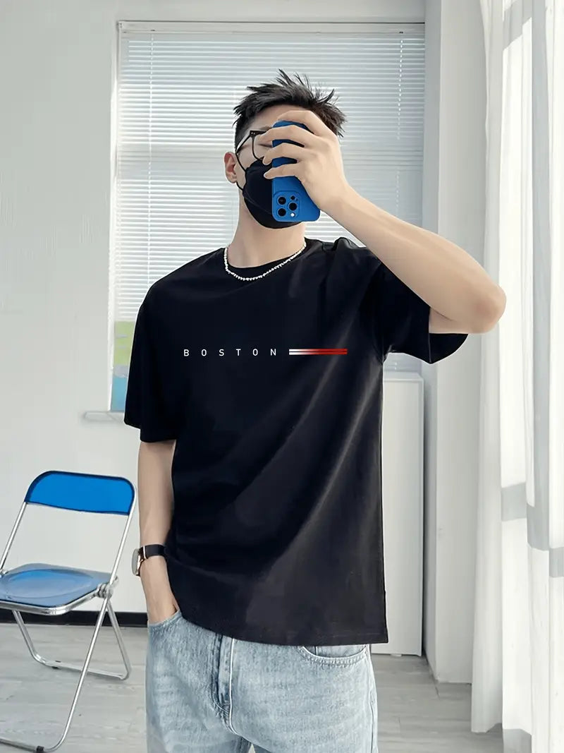 Men's Summer Cotton T-Shirt with Gradient Color Stripe Pattern Crew Neck Short Sleeve Casual Top