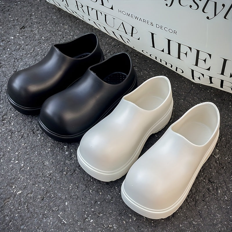 Men Women Waterproof Black Rain Boots EVA Flat Lace-Up All-Season Casual
