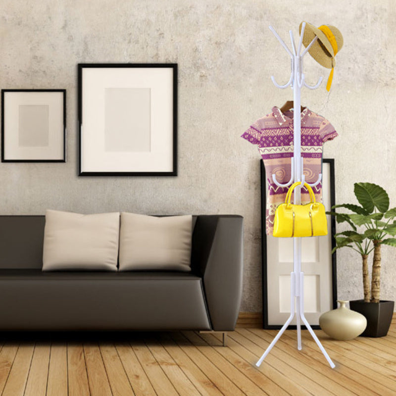 Black Metal Coat Rack with Single Rod and Hooks for Household Storage