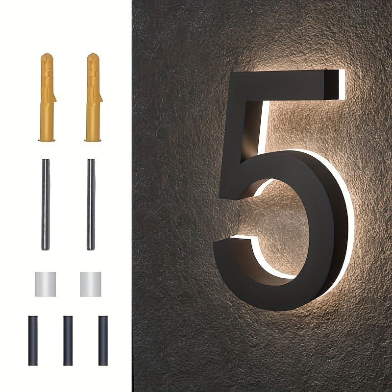 6-Inch Stainless Steel LED House Number Sign Wall Mount Modern Minimalist Address Plate
