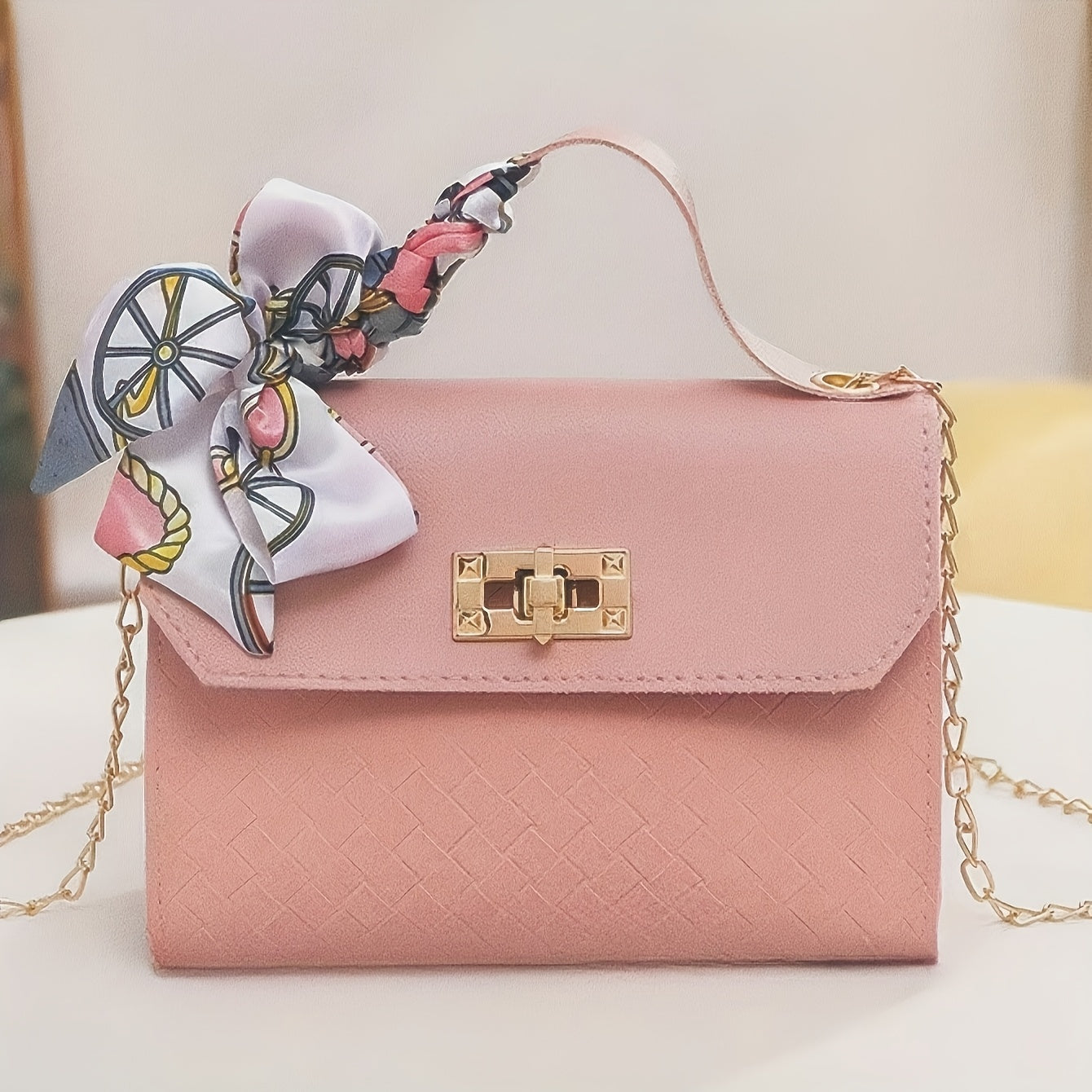 Mini Crossbody Bag with Scarf Chain Strap Lightweight Detachable Shoulder Bag in Multiple Colors