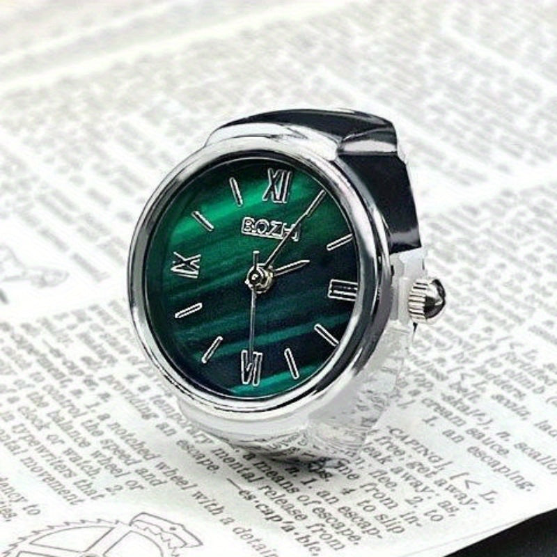 Mini Finger Watch for Women Small Size Rose Gold Retro Style Green Band