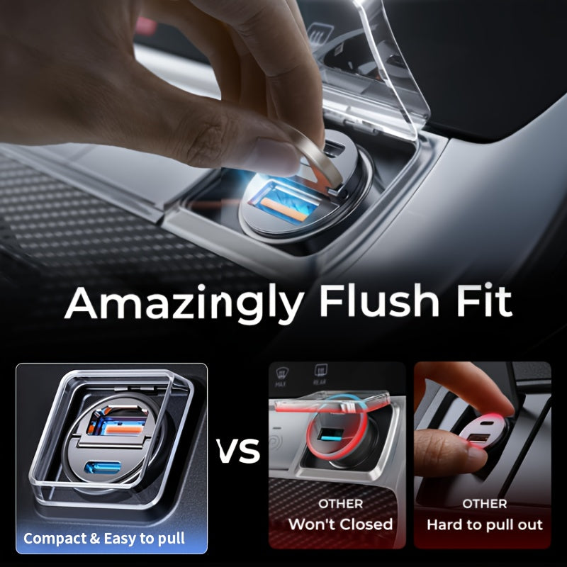 Mini Metal Car Charger 90W Dual USB C PD QC3.0 Fast Charging Adapter
