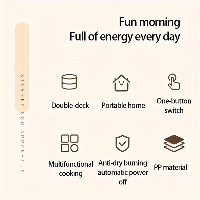 Electric Steamer with Egg Cooker Automatic One-Button 3D Heating Dry Burn Protection