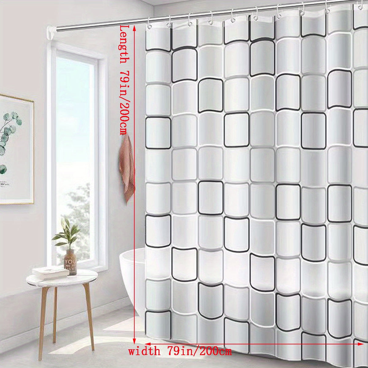 Geometric Pattern Waterproof Shower Curtain with Hooks PEVA Easy Clean Bathroom Decor