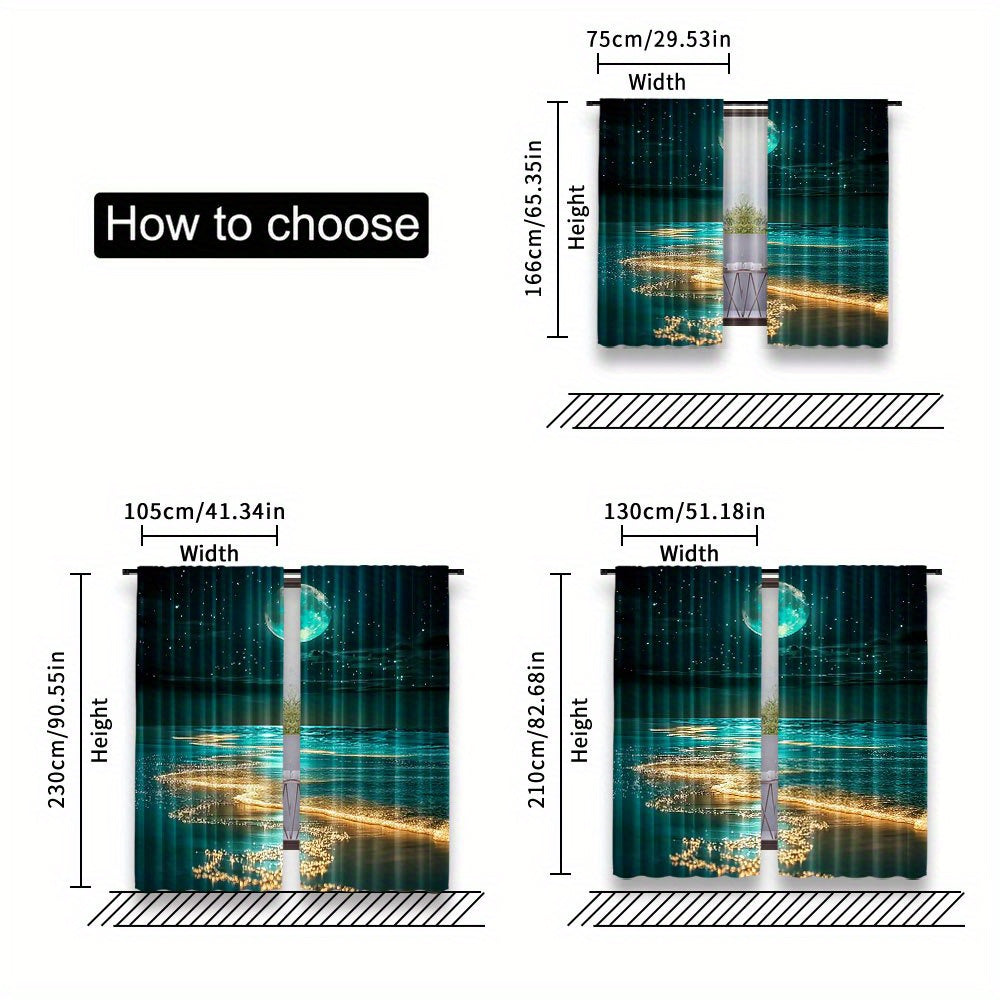 Modern Moonlit Beach Scene Blackout Curtains 2Pcs Polyester Rod Pocket 75x166cm