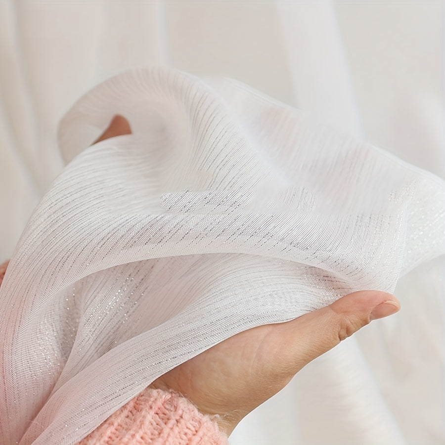 White Shiny Tulle Curtain Panels for Bedroom Living Room Office Kitchen Elegant Sheer Window Drapes