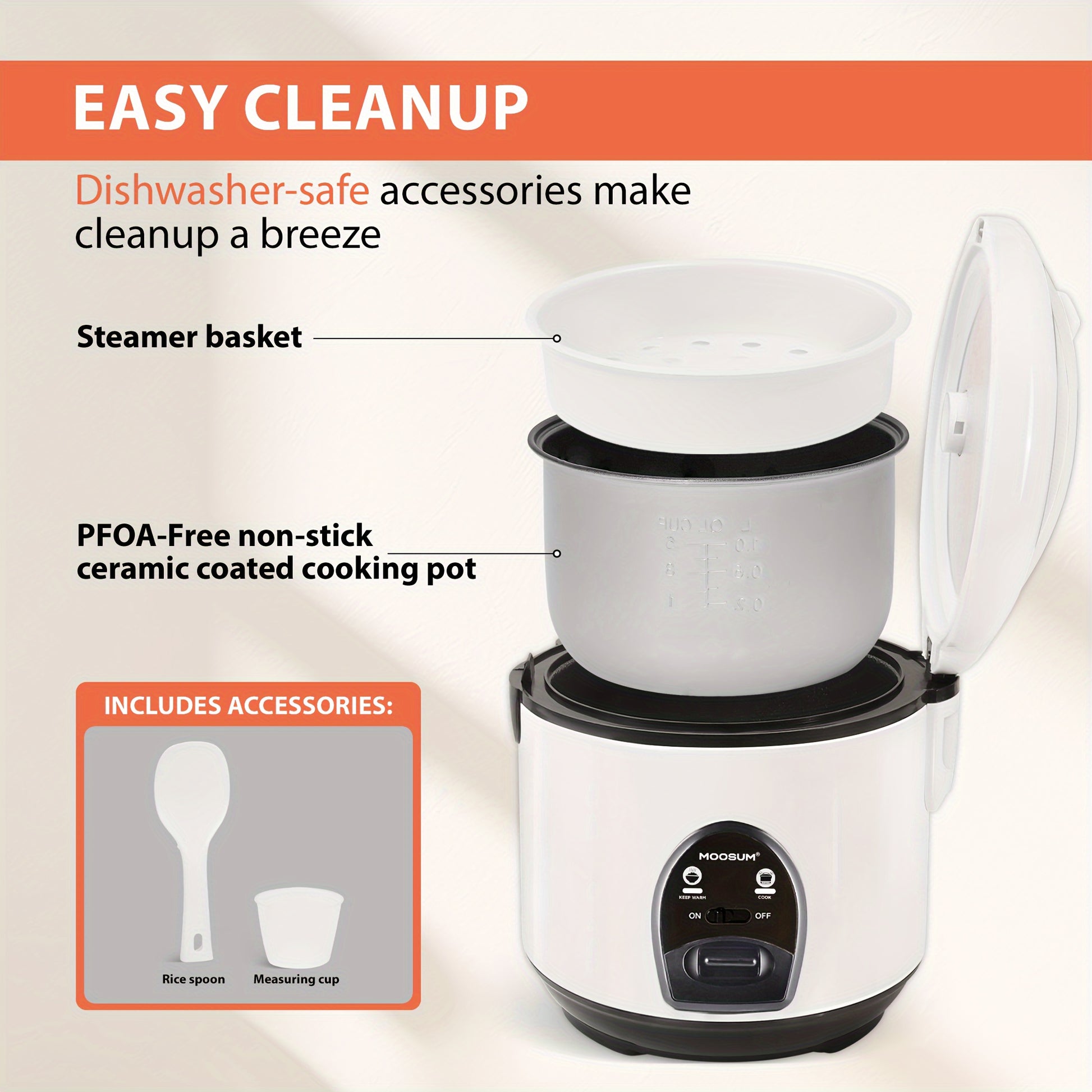 Rice Cooker 0.8L One-Button Operation Keep Warm Steam Insert Spoon Cup