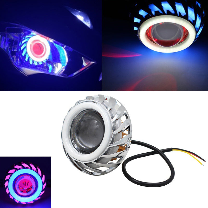 Motorcycle LED Headlight Projector Lens Dual Angel Devil Eye Headlamp Cyclone Style