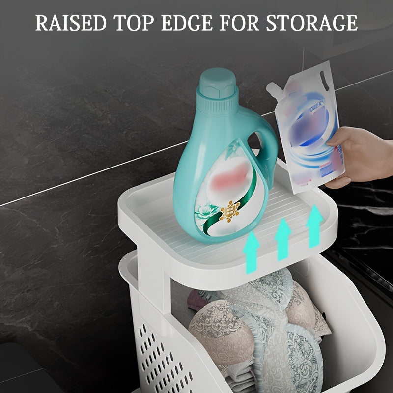 Multi-Functional 3-Tier Laundry Hamper on Wheels for Bathroom Bedroom Balcony