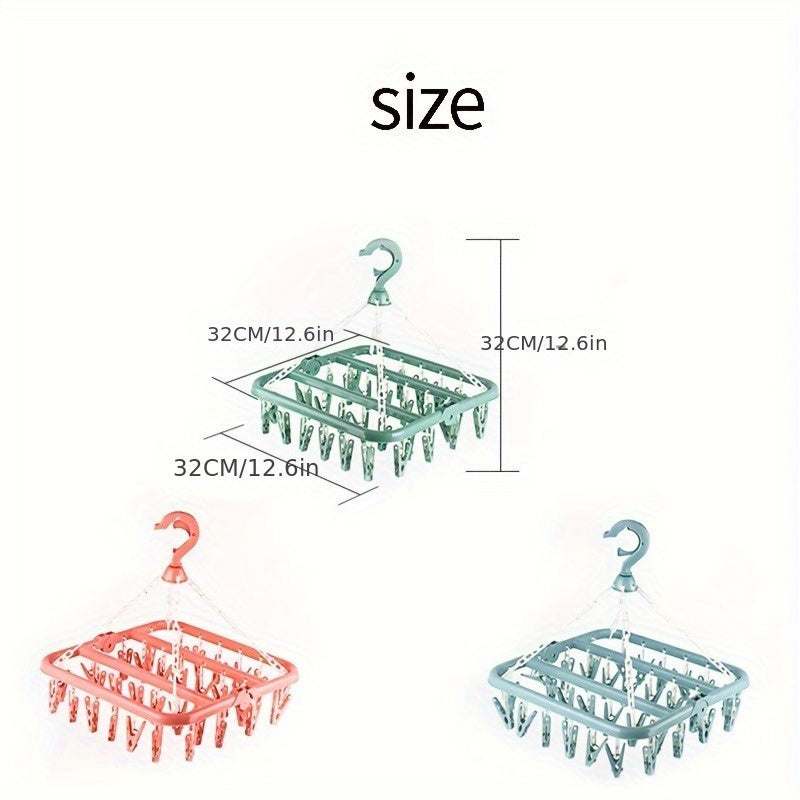 Plastic Laundry Drying Rack with 32 Clips Swivel Hook Space-Saving Organizer