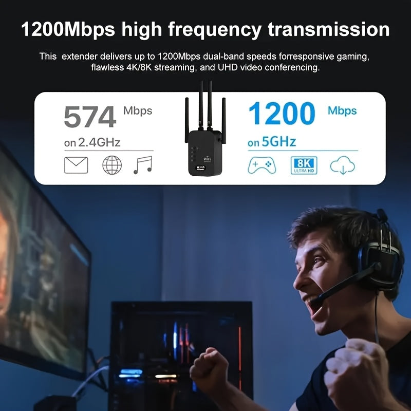 Wi-Fi Signal Booster Extends Coverage Up to 8500 Sq Ft Dual-Band 1200 Mbps for Multiple Devices