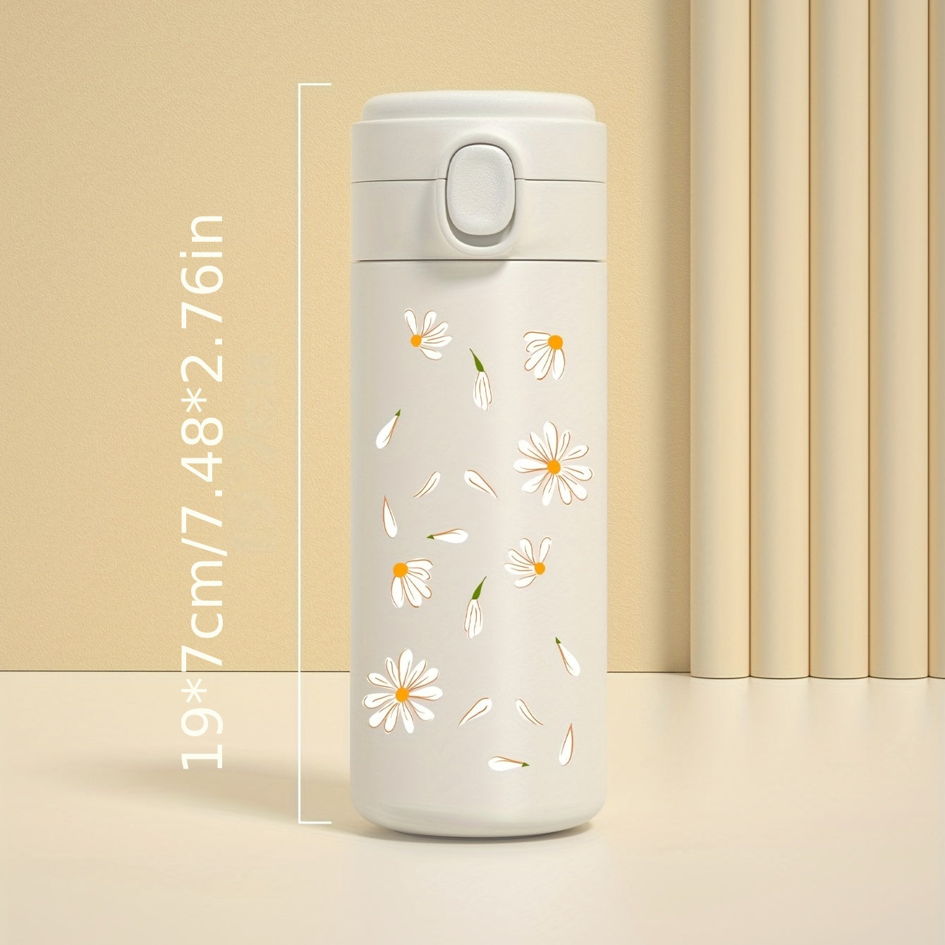 Daisy Pattern Vacuum Flask 350ml Stainless Steel Leakproof Thermal Bottle