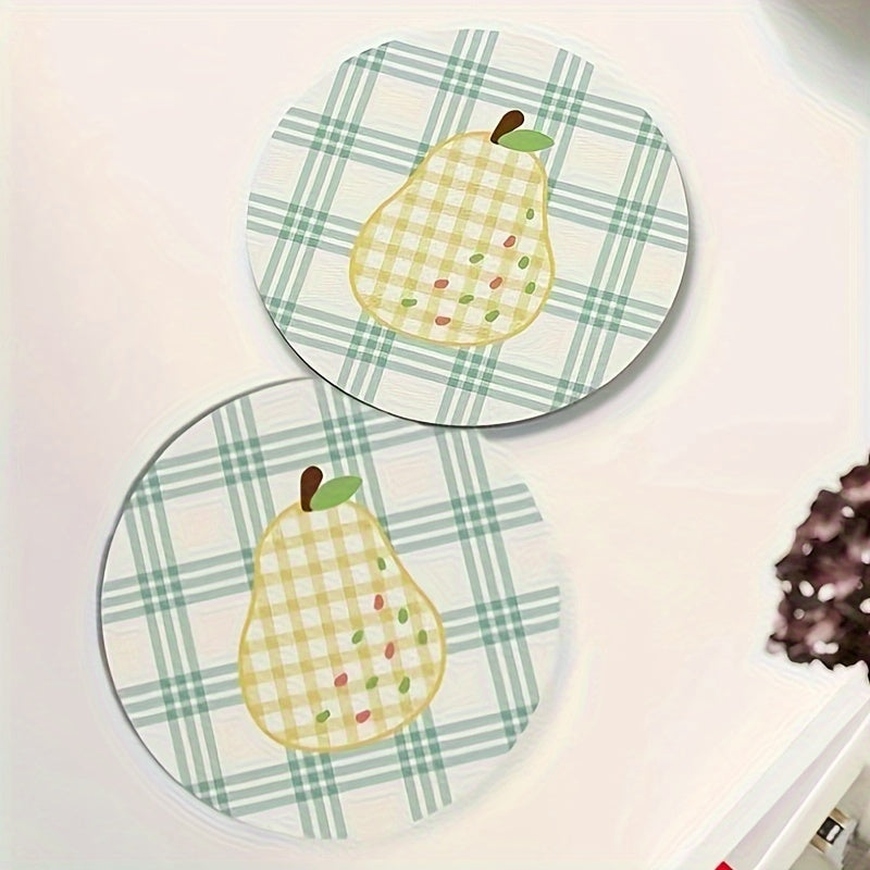 Round Pear Design Rug Pad Water-Resistant Washable Low Pile Kitchen Mat