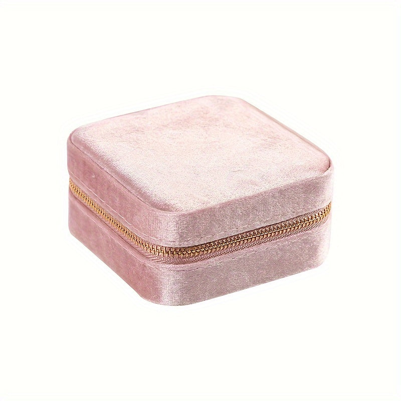 Velvet Jewelry Box with Mirror and Dual-Layer Zippered Storage for Accessories