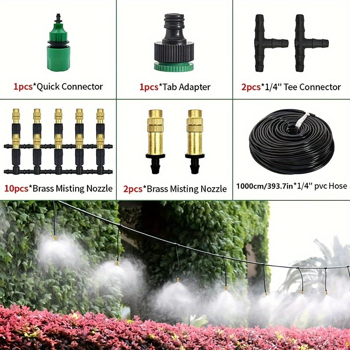 Outdoor Misting Cooling System with Copper Nozzles and Drip Irrigation Kits for Garden Watering and Humidification