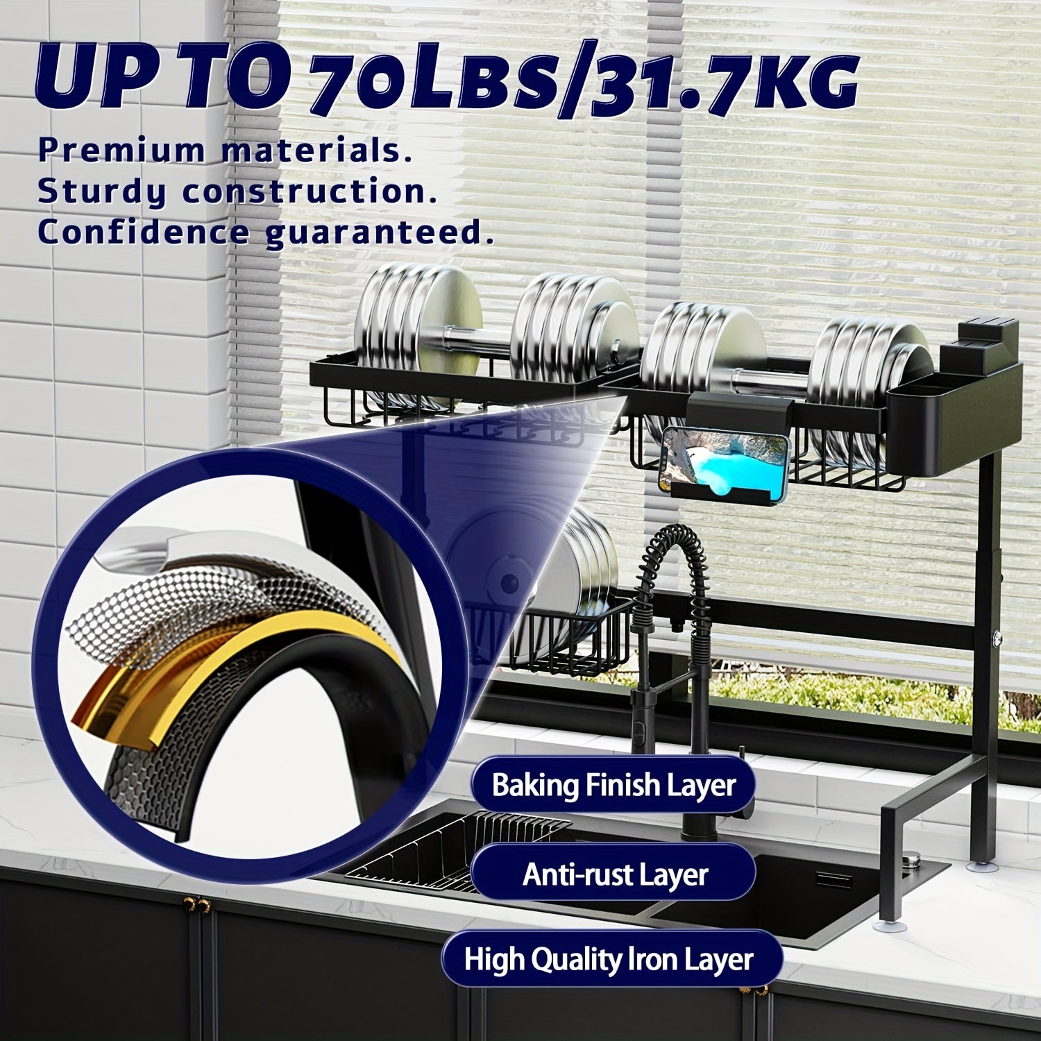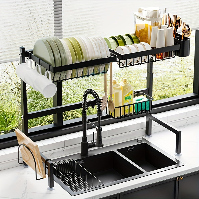 Stainless Steel Over Sink Dish Rack with Utensil Holder and Plate Storage