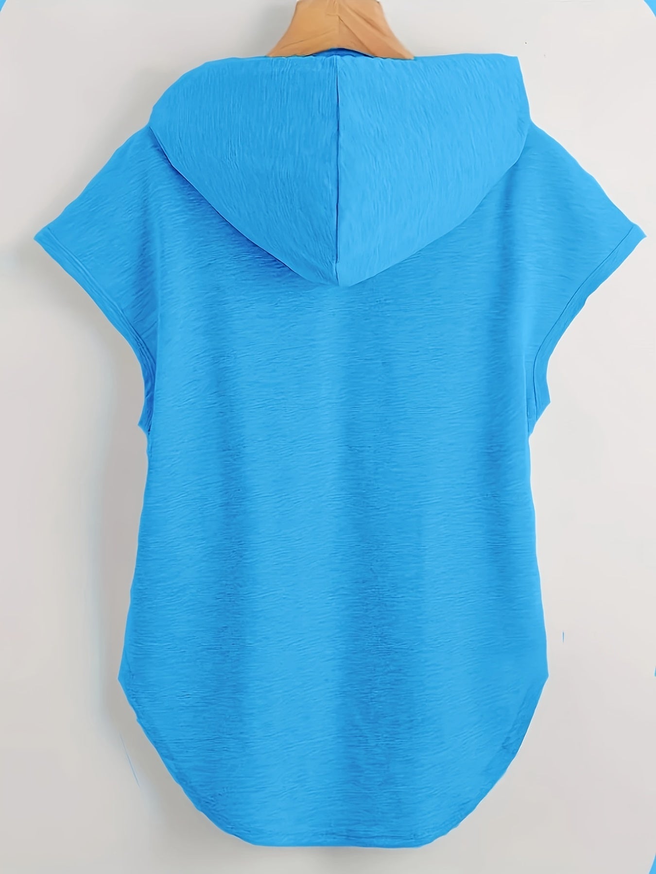 Oversized Hooded T-Shirt Men Polyester Spandex Solid Casual Sportswear Spring Summer Fall