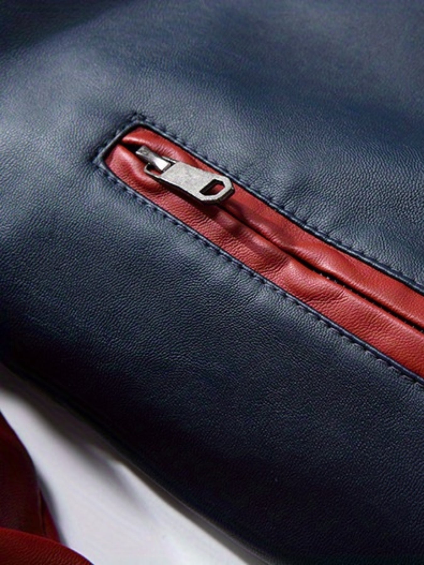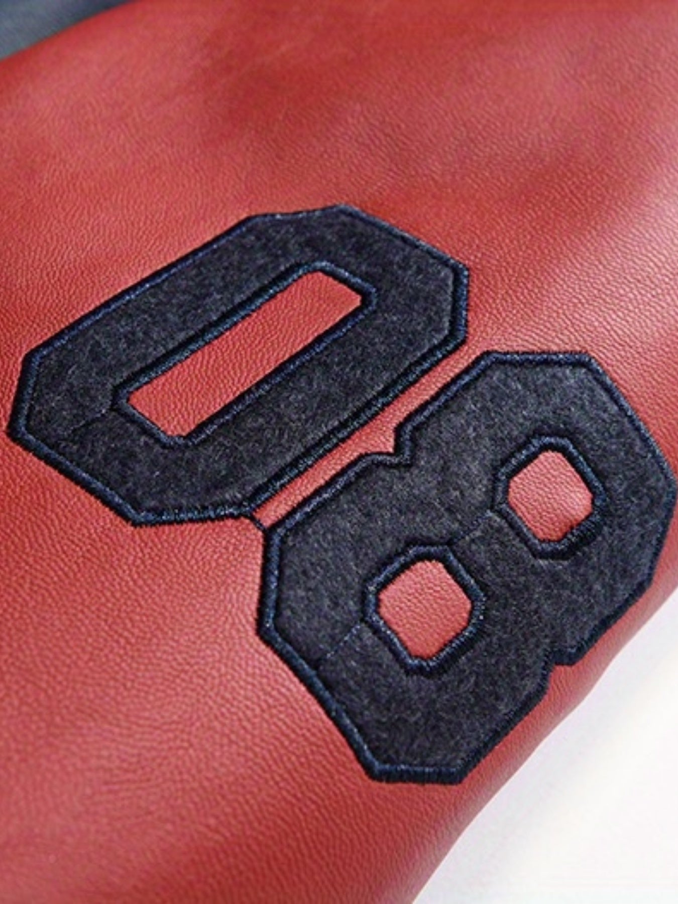 Plus Size Oversized PU Baseball Jacket for Men with Letter R Print Spring Autumn