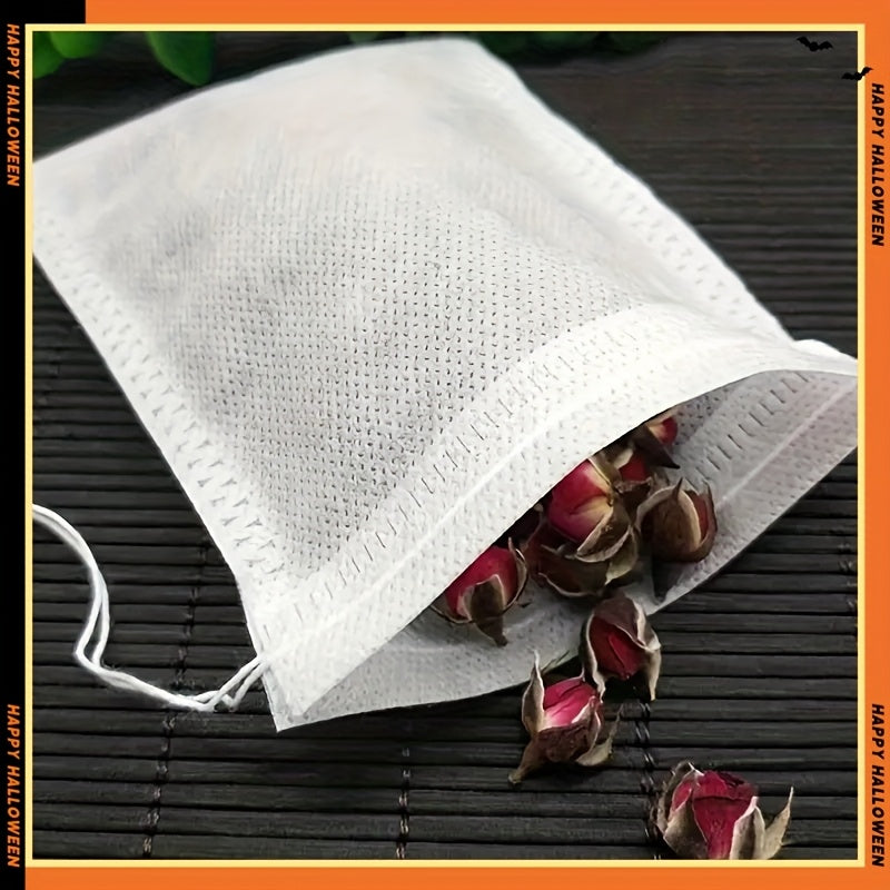 Pack of 100 Non-Woven Tea Bags with Drawstring for Spices Herbs and Floral Teas