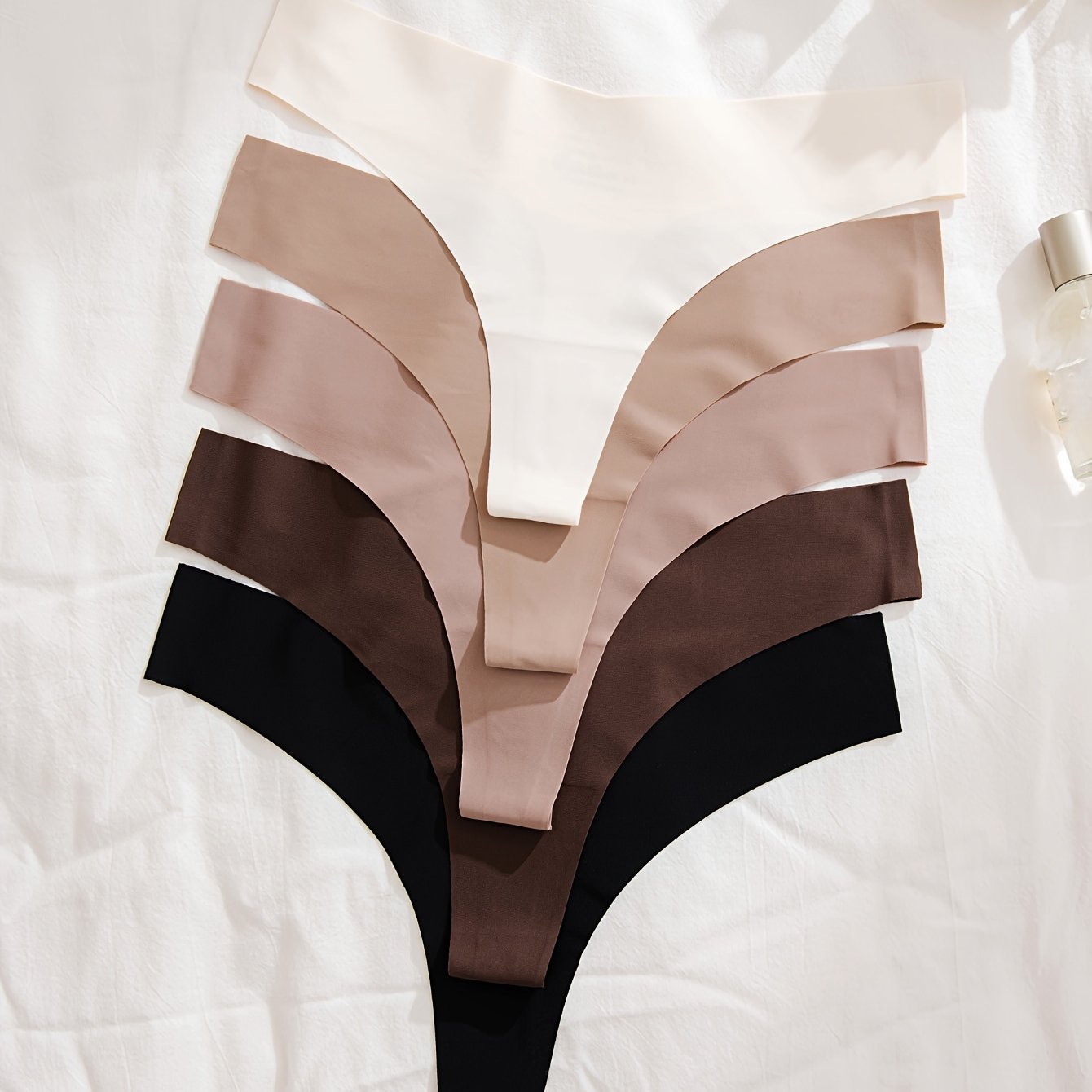 Pack of 5 Seamless Solid Women's Thongs Breathable Comfortable Underwear