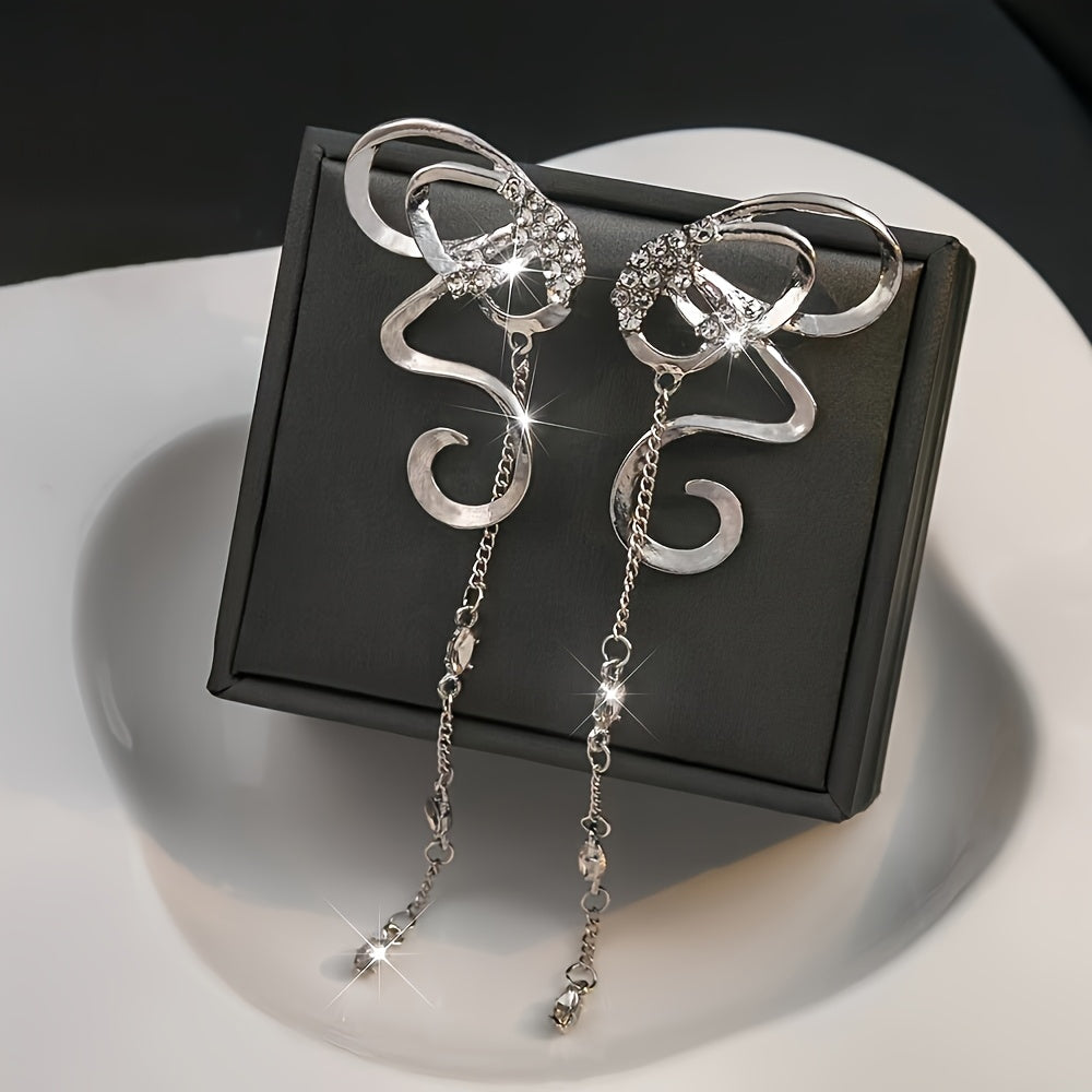 Sterling Silver Butterfly Drop Earrings with Cubic Zirconia and Ribbon Hollow Design