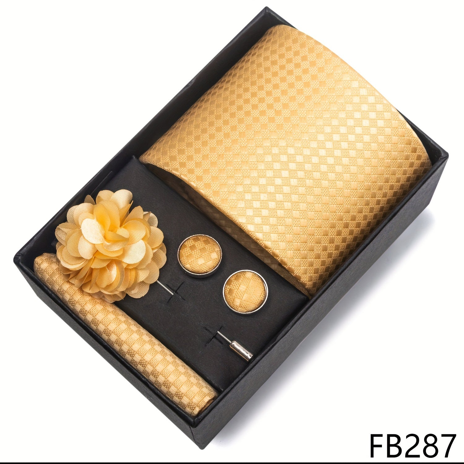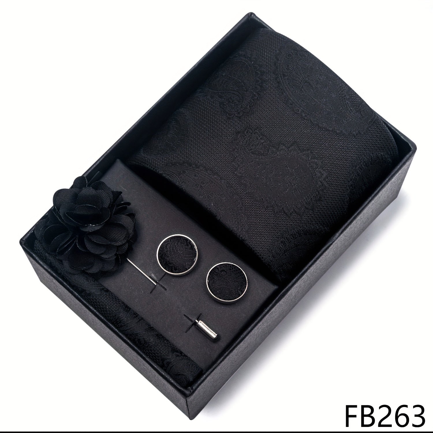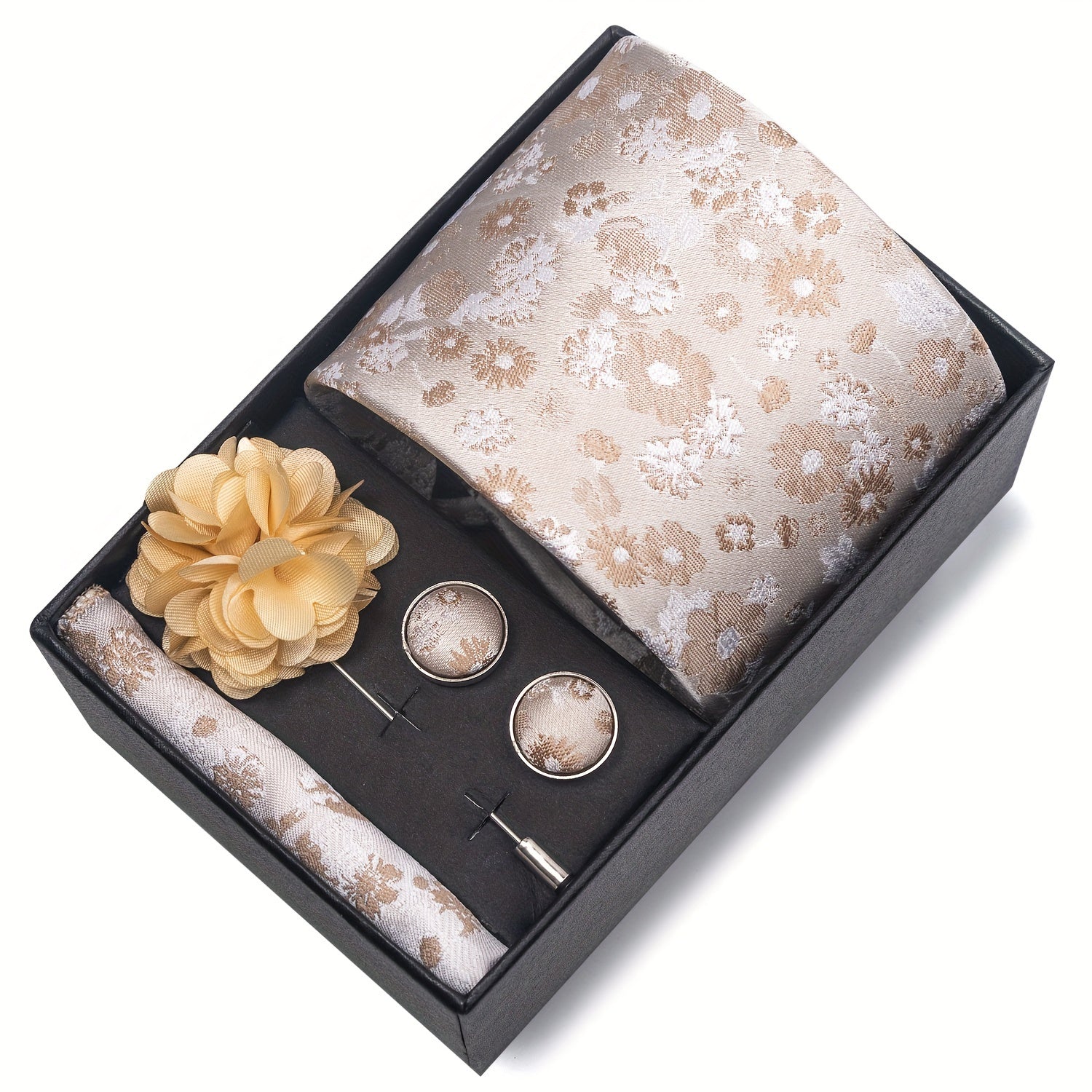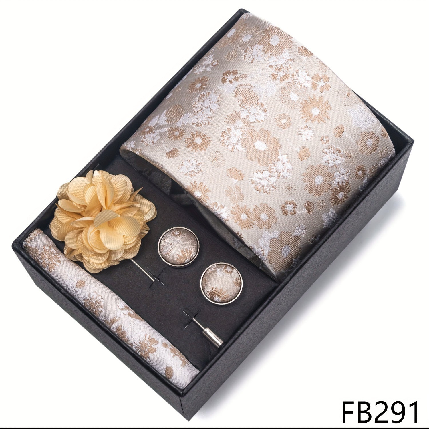 Men's Fashion Tie Set with Striped and Paisley Neckties, Pocket Square, Cufflinks, Lapel Pin in Gift Box for Business and Weddings