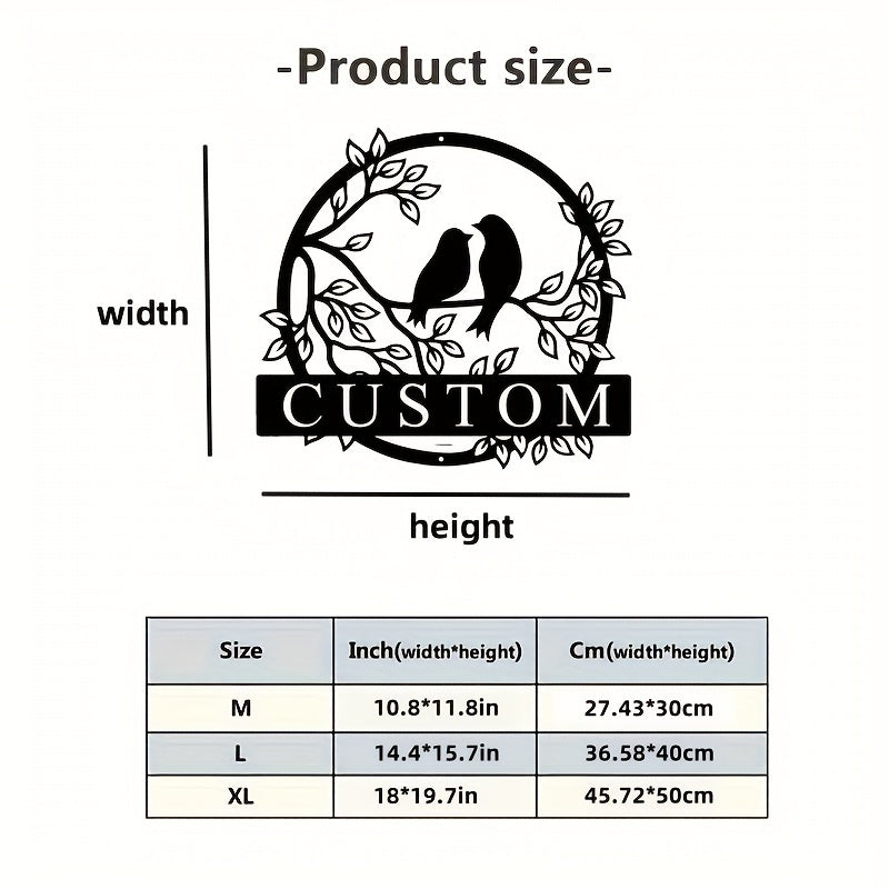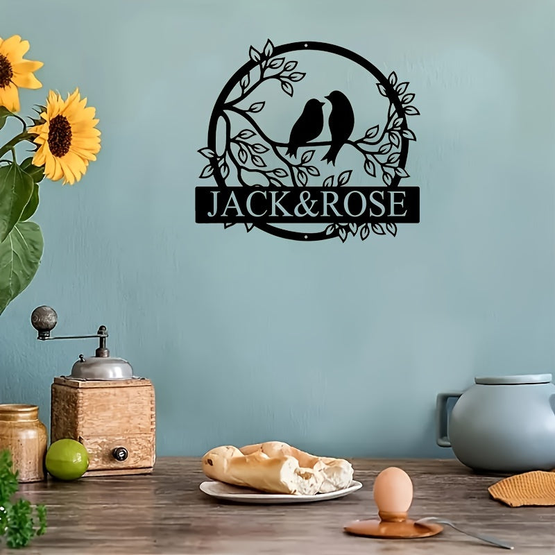 Personalized Lovebirds Metal Wall Art Sign for Porch Patio Garden Decor