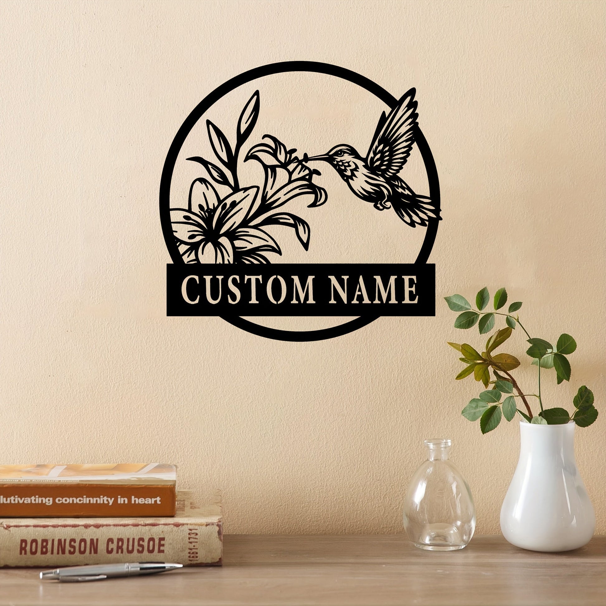 Personalized Hummingbird Metal Wall Sign Custom Name Indoor Outdoor Decor
