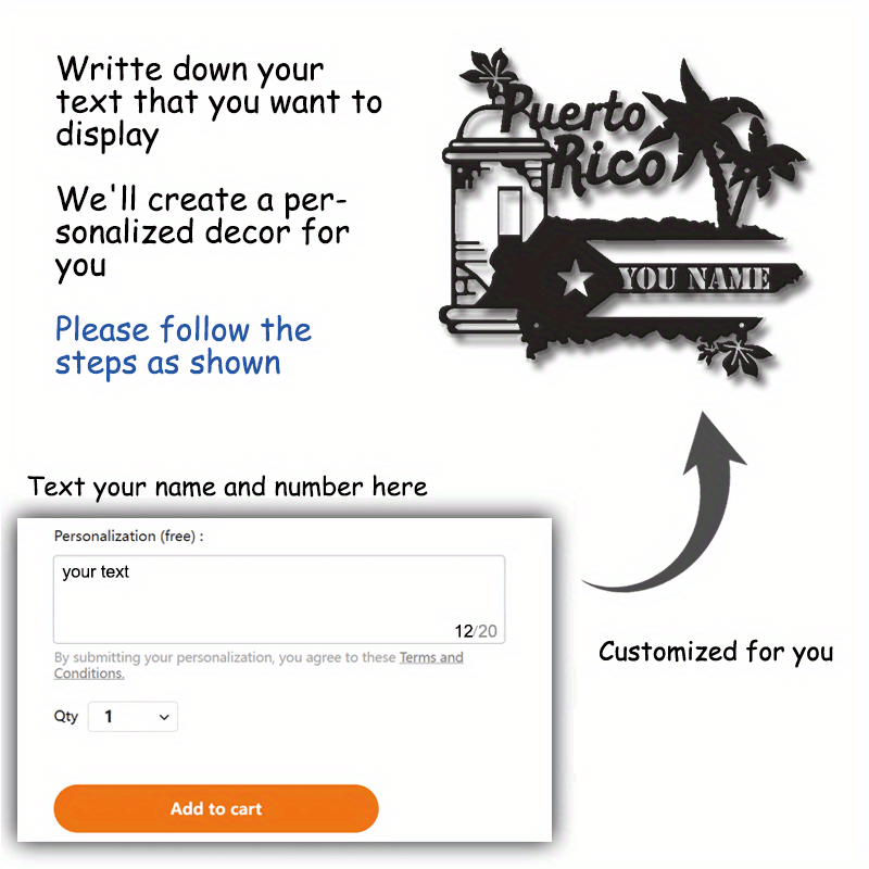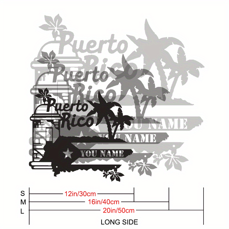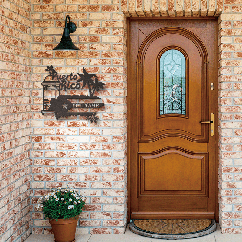 Personalized Name Metal Sign with Puerto Rico Flag Wall Art for Home and Outdoor Decor