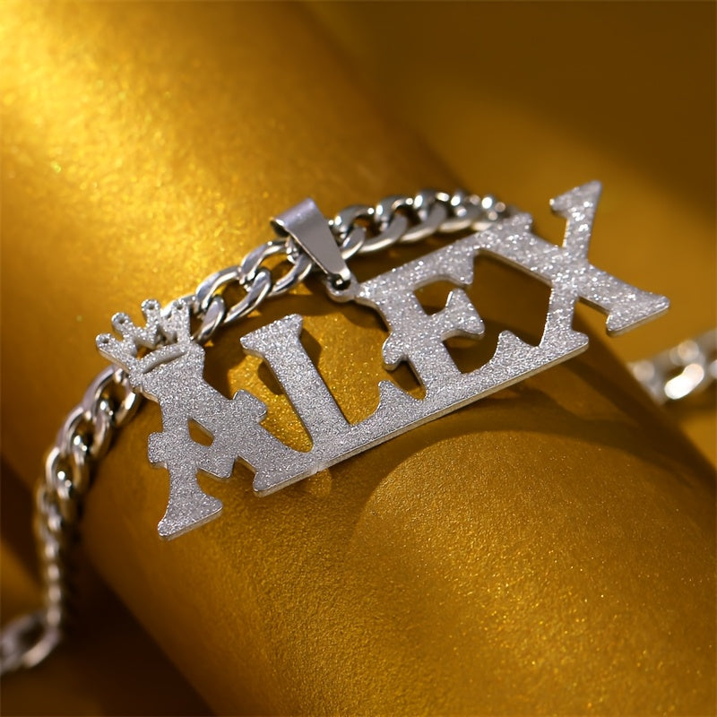 Personalized Name Necklace with Crown Pendant Stainless Steel Silver Plated Unisex Jewelry