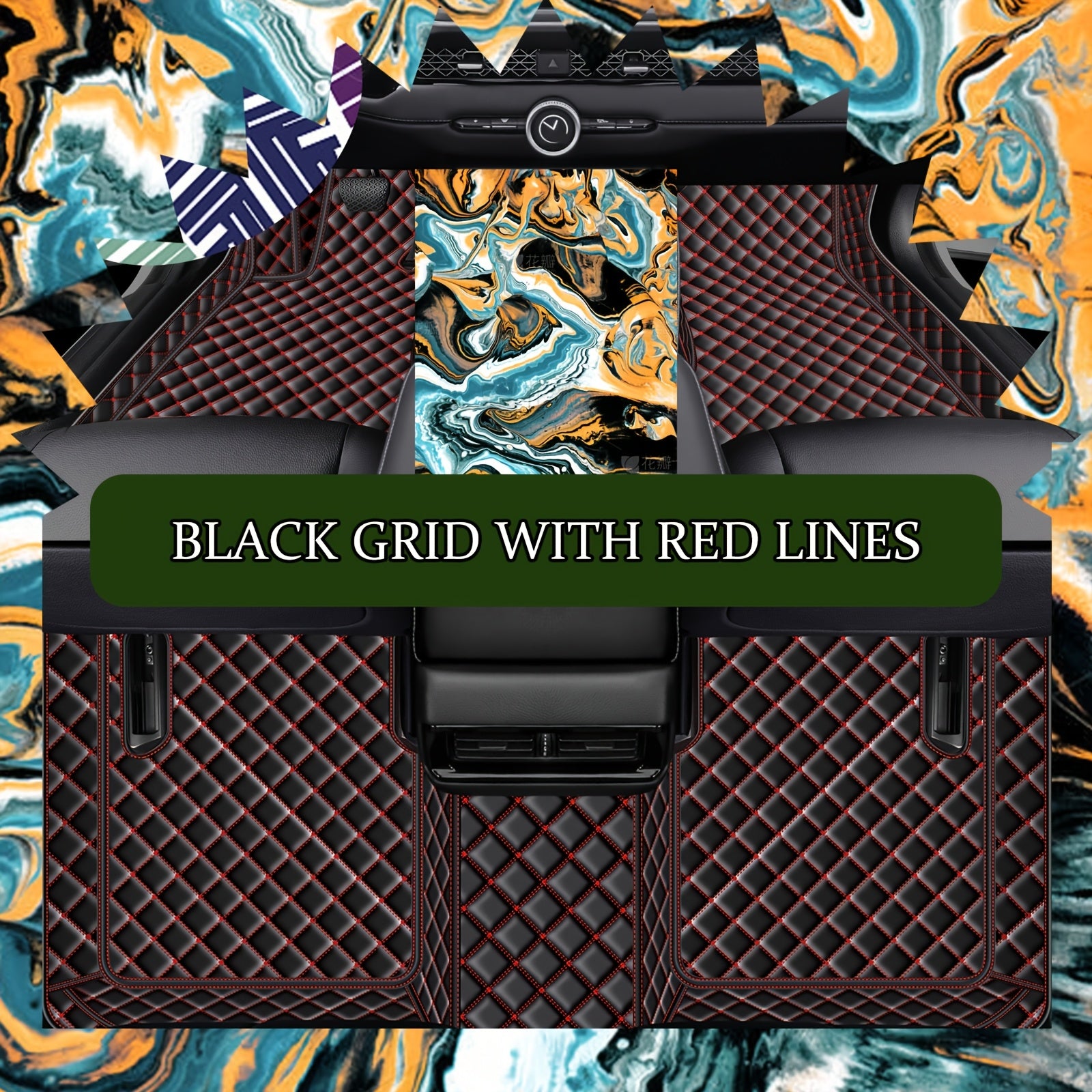 Pink PU Leather Car Floor Mats for SUV Diamond Pattern Waterproof Non-Slip
