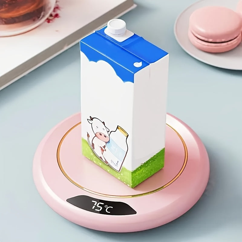 Pink USB Coffee Warmer with Copper Rose Design, 3 Temp Settings