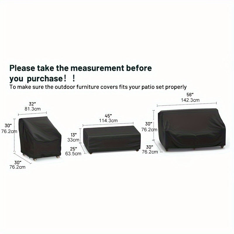 Heavy Duty Waterproof Outdoor Patio Furniture Cover Set for Loveseat, Chairs, and Coffee Table Black