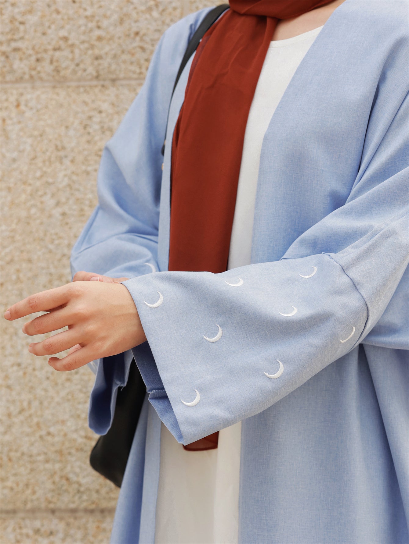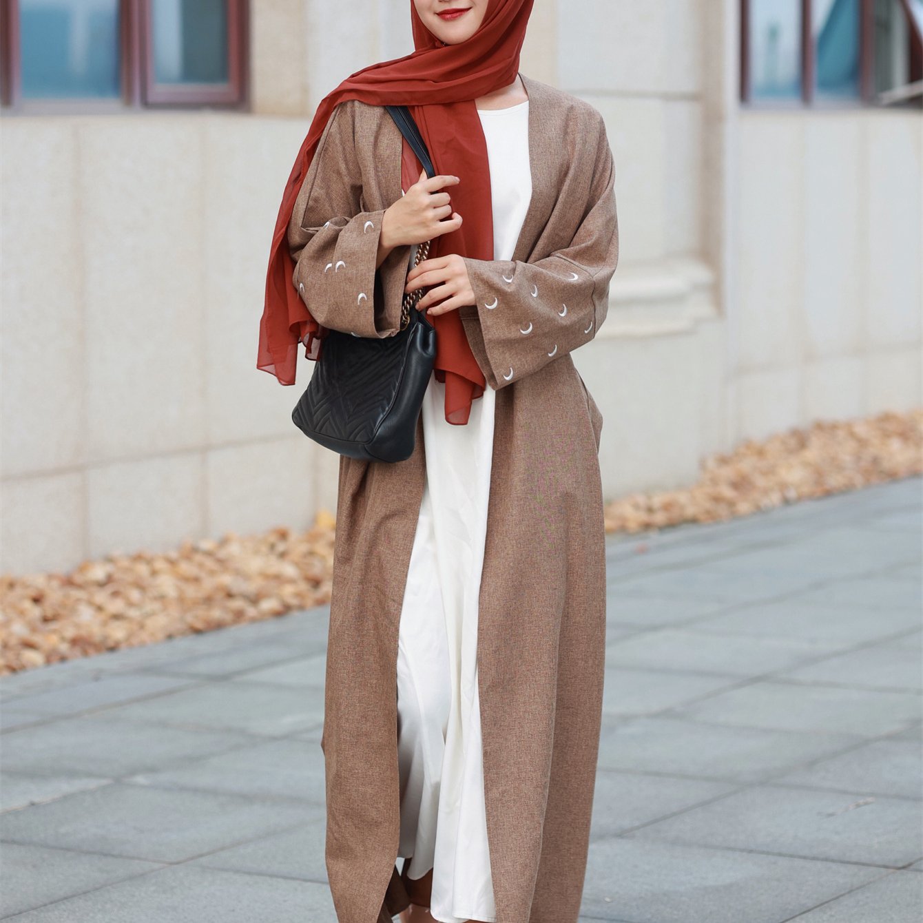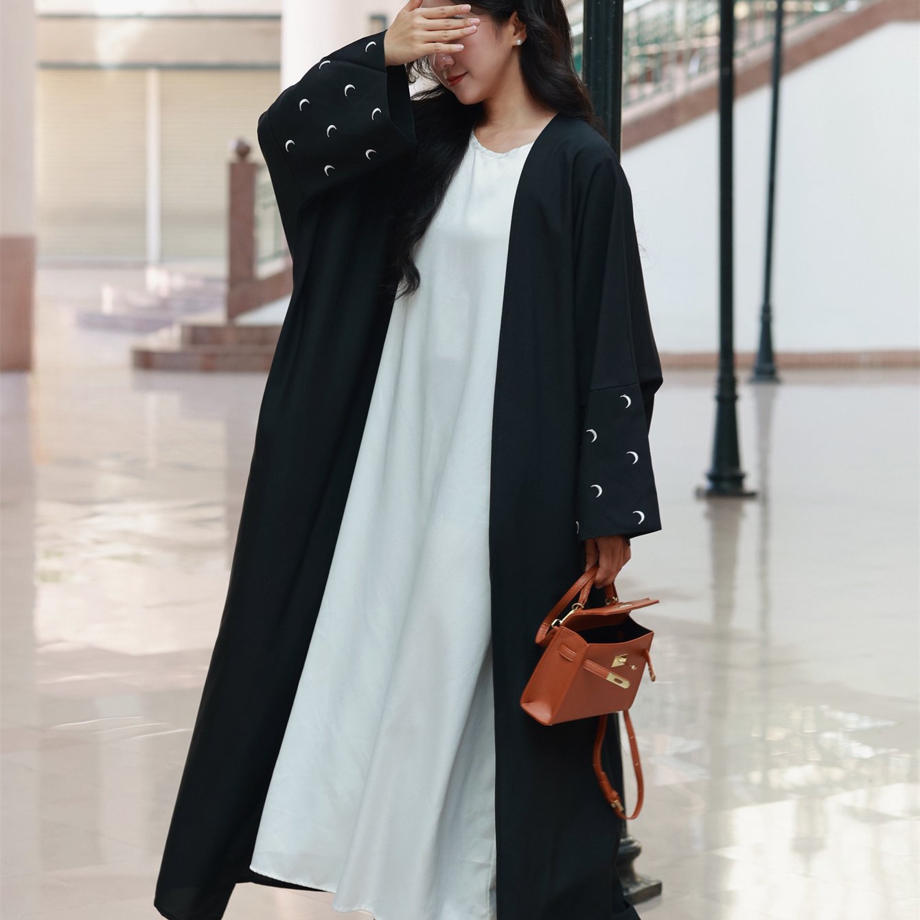 Plus Size Elegant Moon Embroidered Sleeve Abayas for Middle Eastern Muslims
