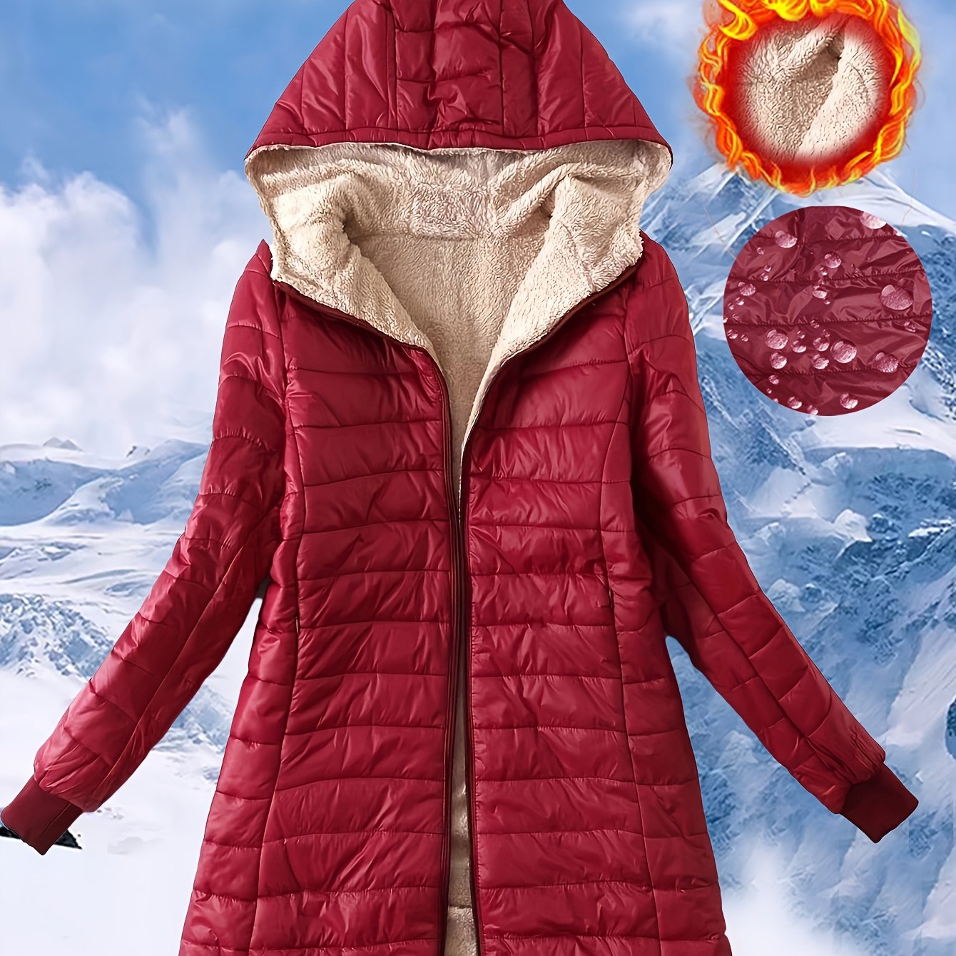 Plus Size Fleece-Lined Hooded Winter Jacket for Women Red Large
