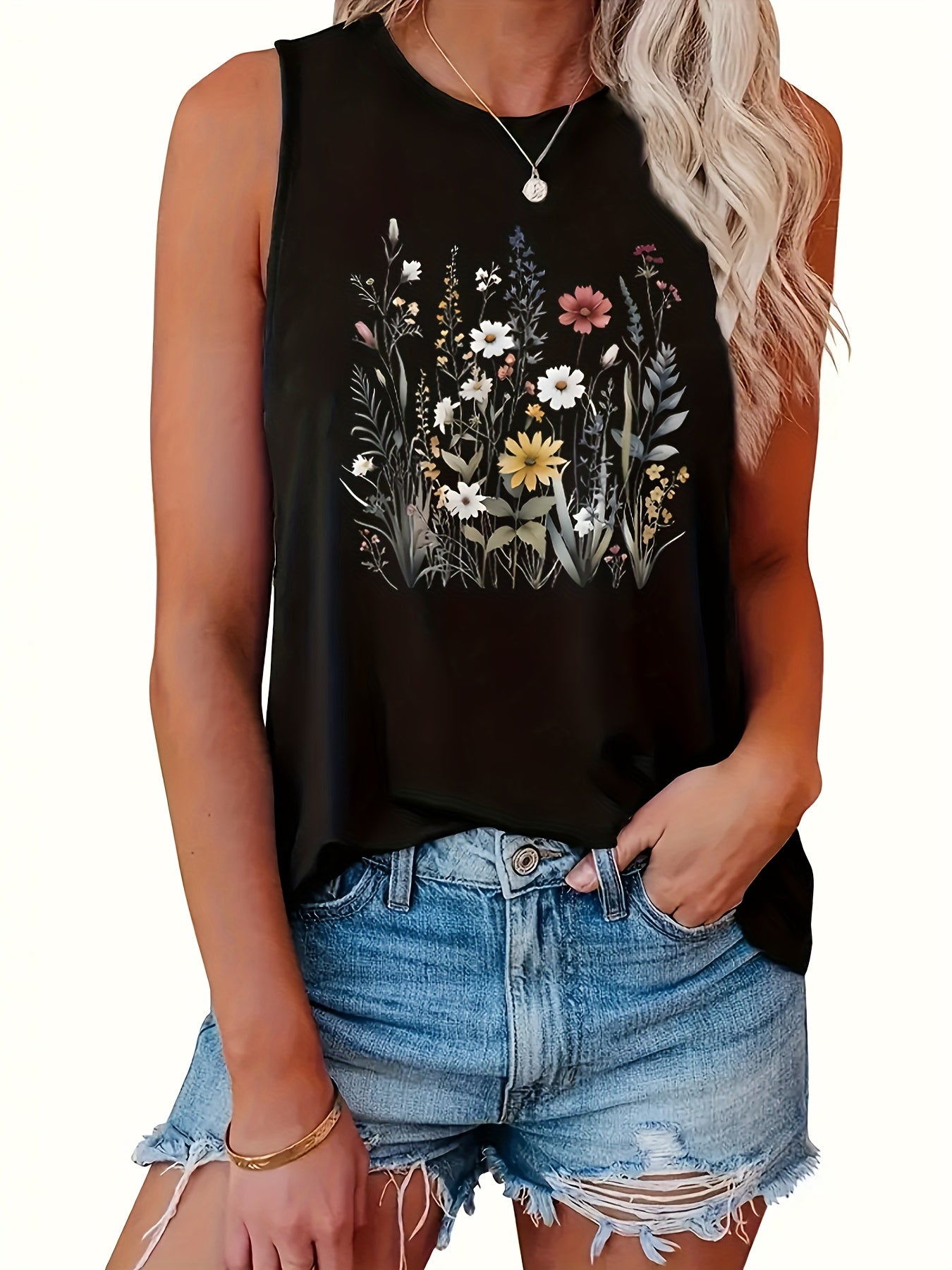 Plus Size Floral Print Tank Top Casual Sleeveless Crew Neck Summer Spring Women's Clothing