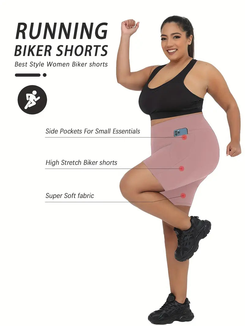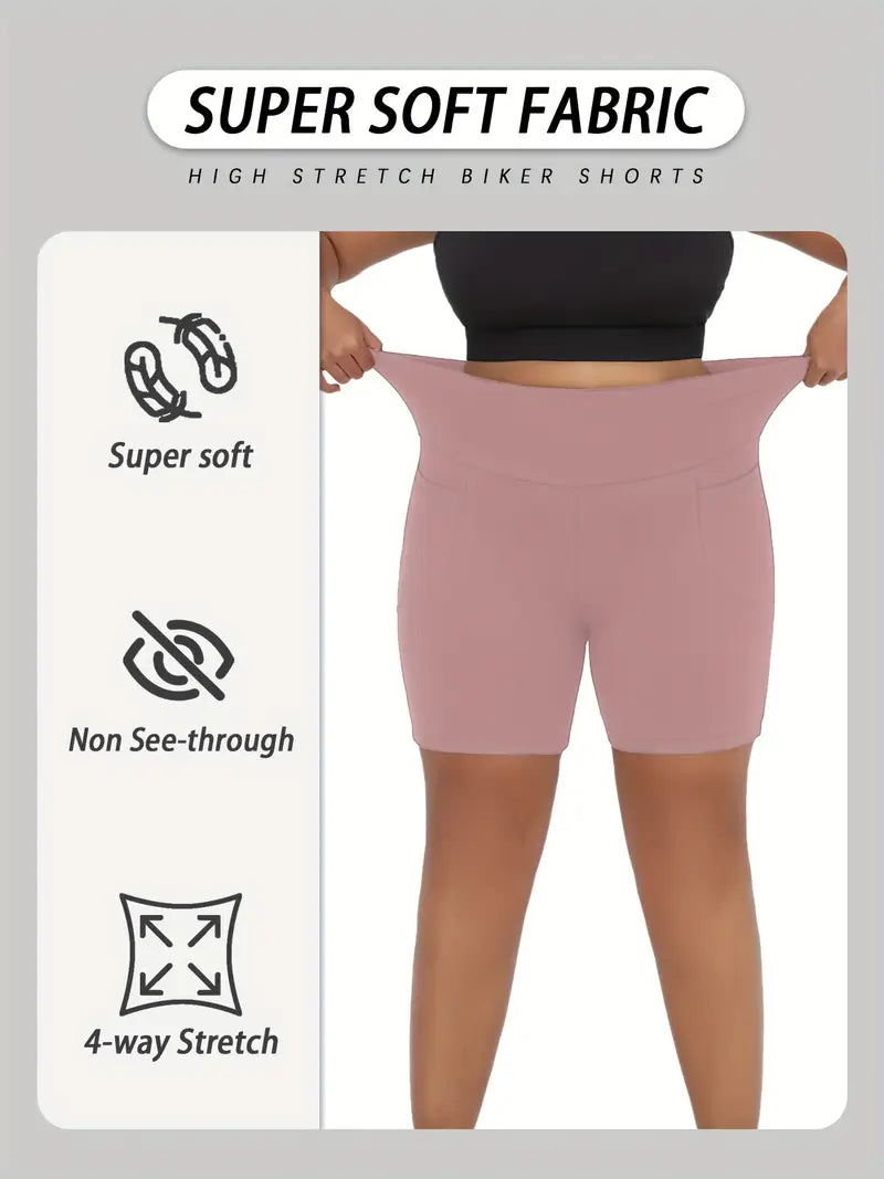 Plus Size High Waisted Biker Shorts Women Pockets Tummy Control Dark Blue