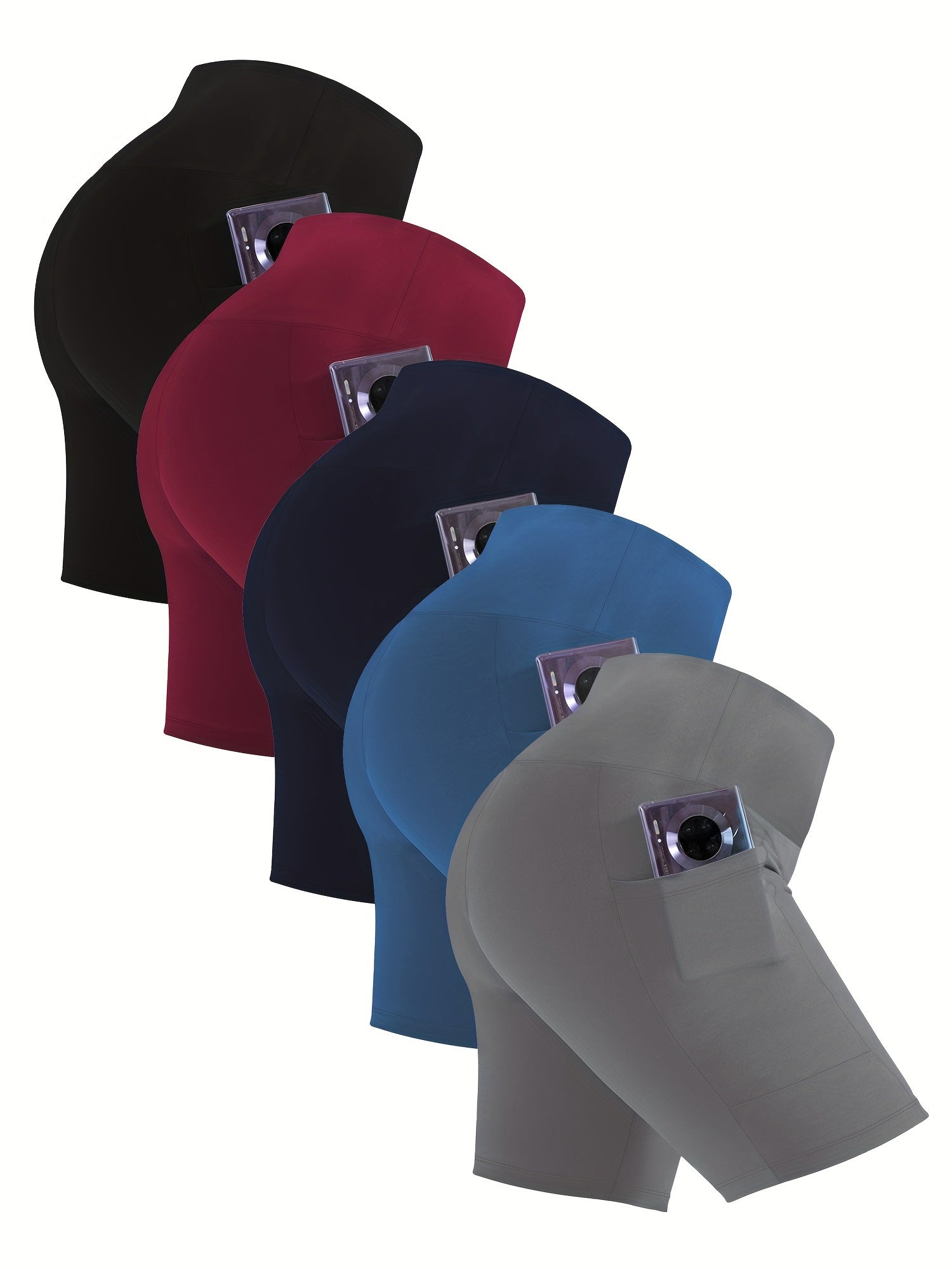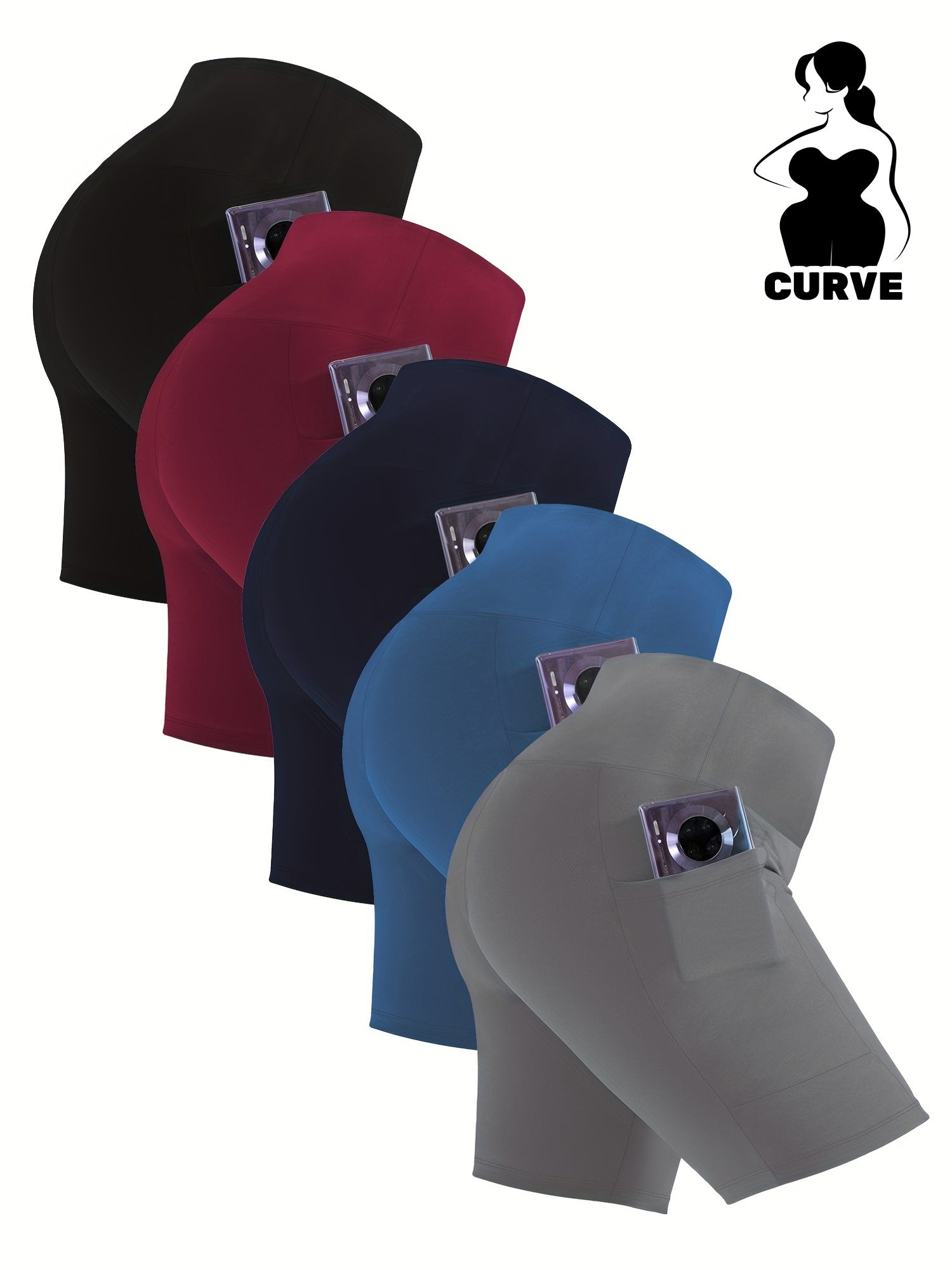 Plus Size High-Waisted Pocketed 5-Panel Shorts 5 Piece Set