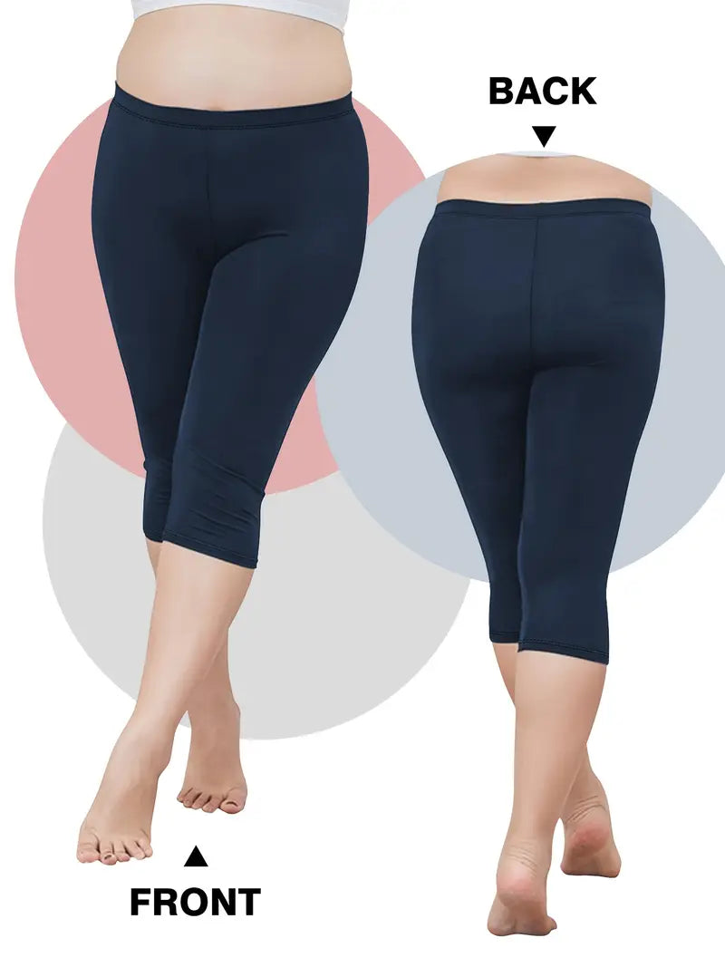 Plus Size High-Waisted Yoga Leggings Capri Tummy Control Butt Lifting