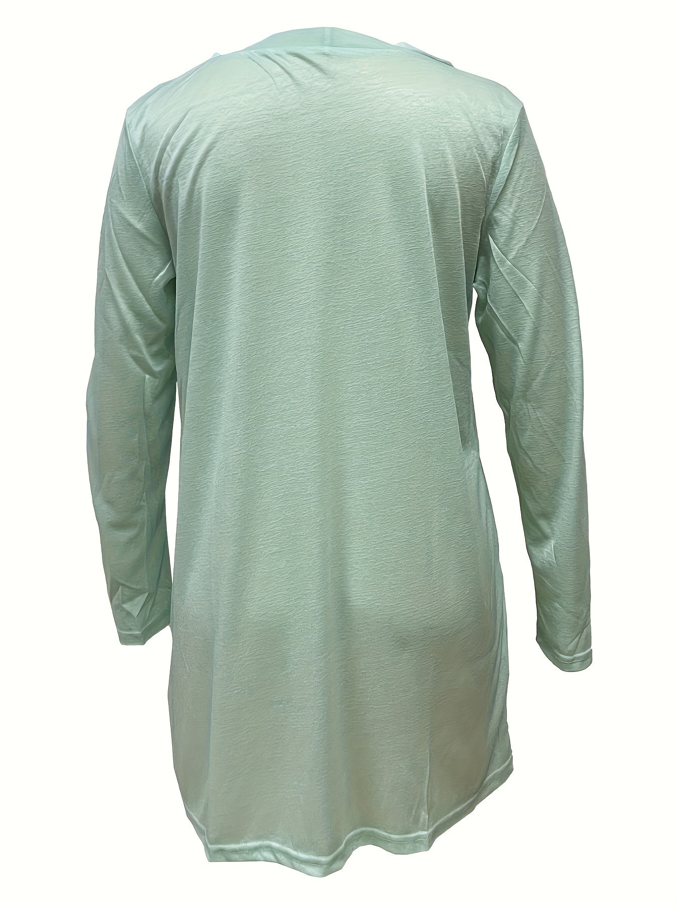 Plus Size Long Sleeve Knit Cardigan V-Neck Solid Color Fall Spring