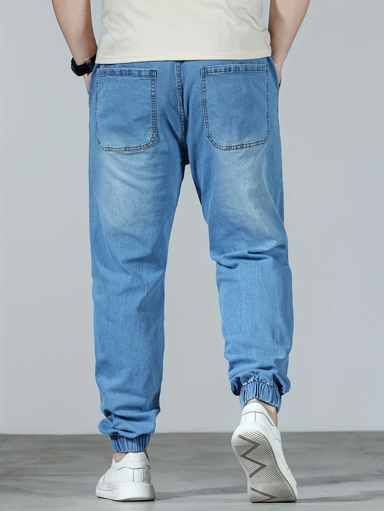 Plus Size Men's Distressed Ripped Denim Joggers Cotton Blend All-Season Casual