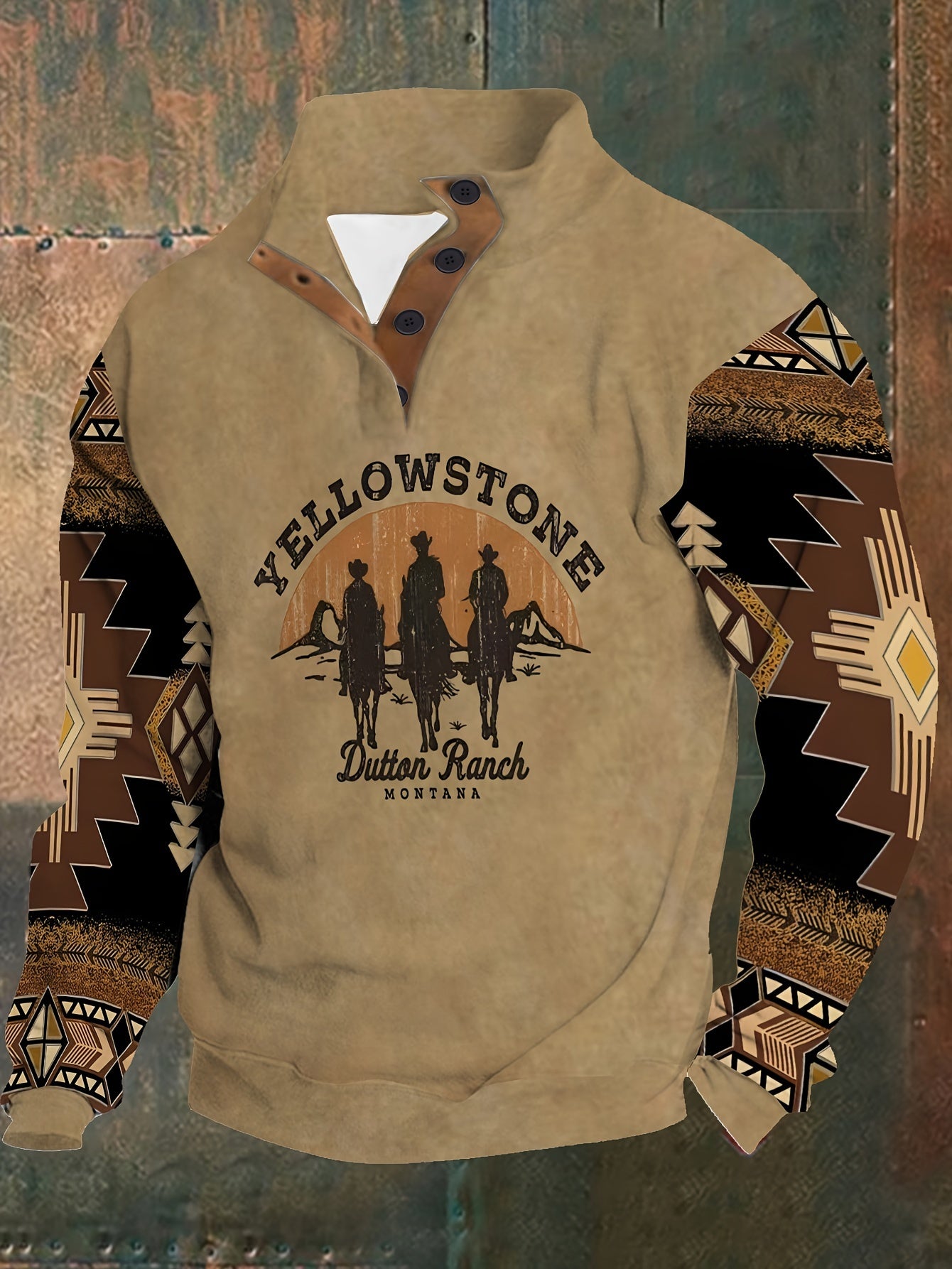 Plus Size Men's Long Sleeve Polyester Shirt with Stand Collar for Parties and Sports