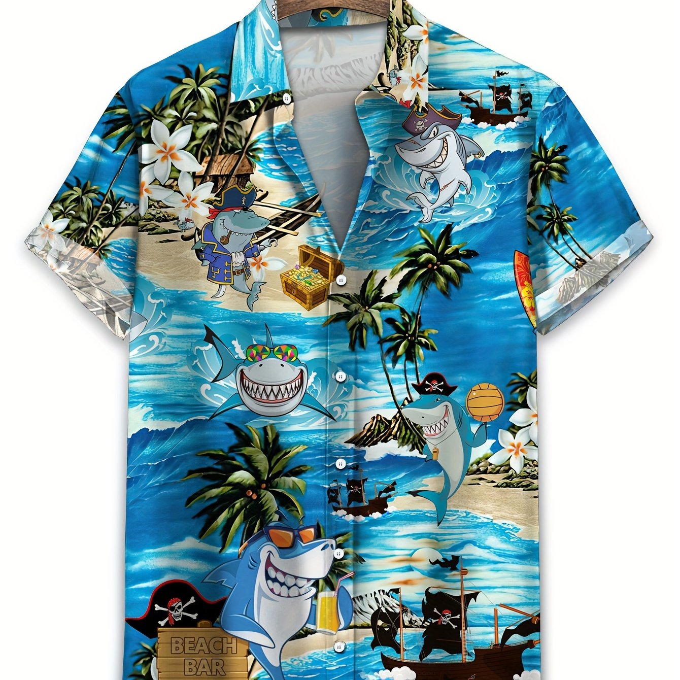 Plus Size Men's Hawaiian Shirt Short Sleeve Casual All Over Flamingo Cowboy Print Polyester