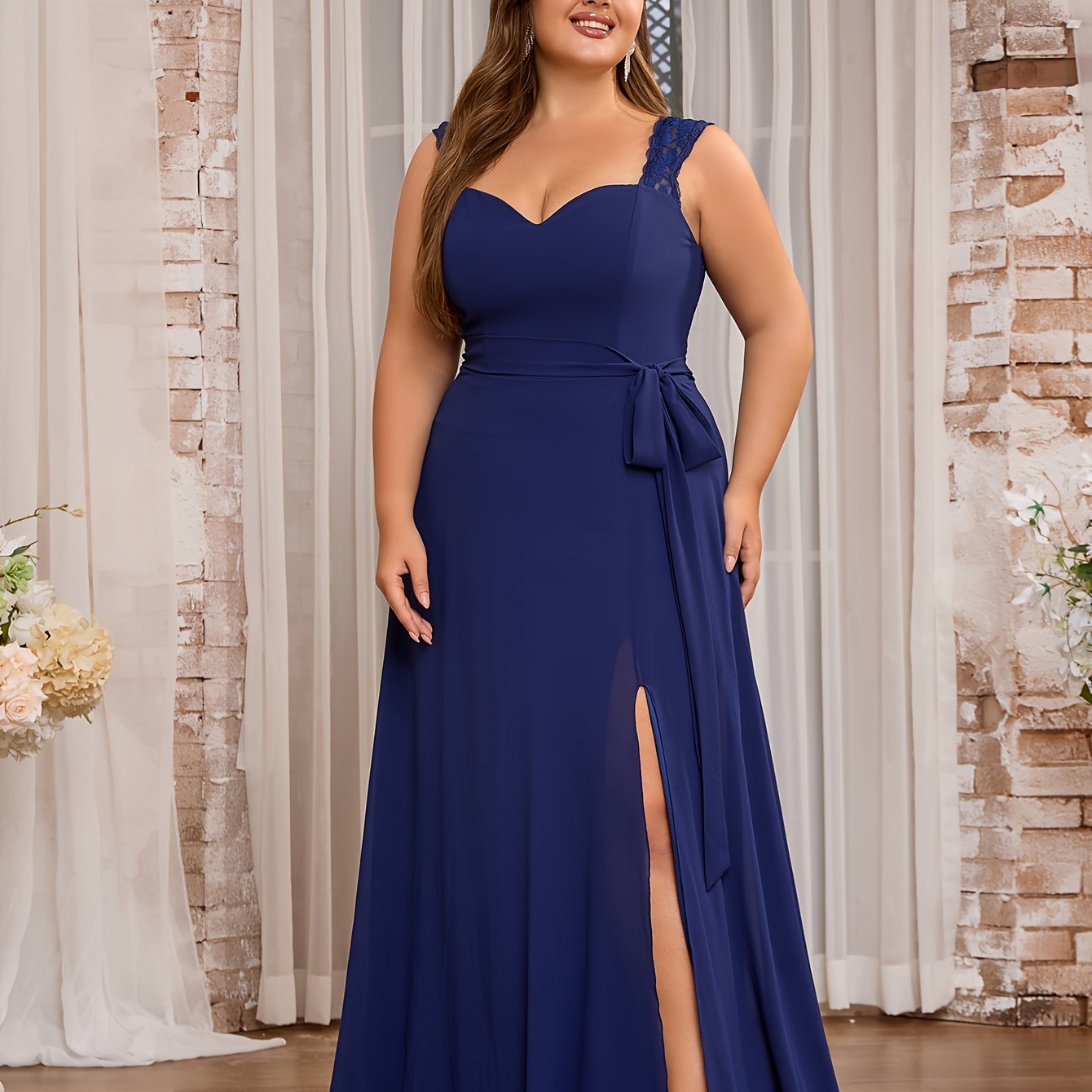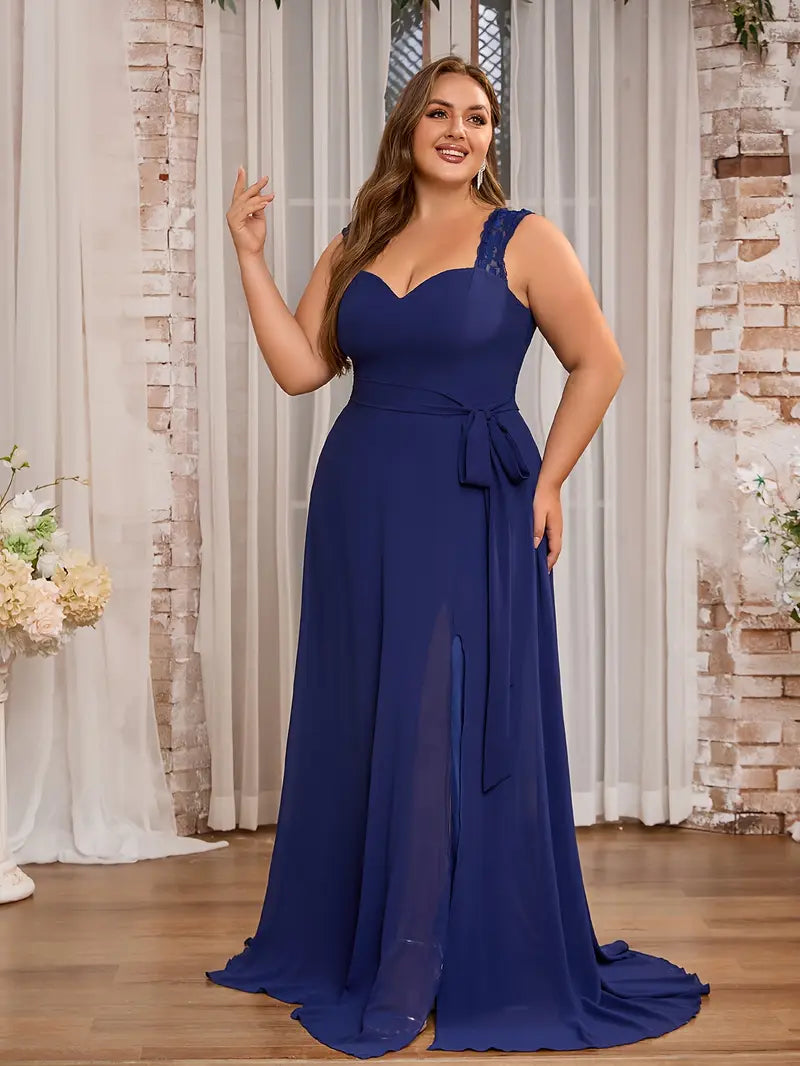 Plus Size Navy Blue Maxi Dress V-Neck Sleeveless A-Line Formal