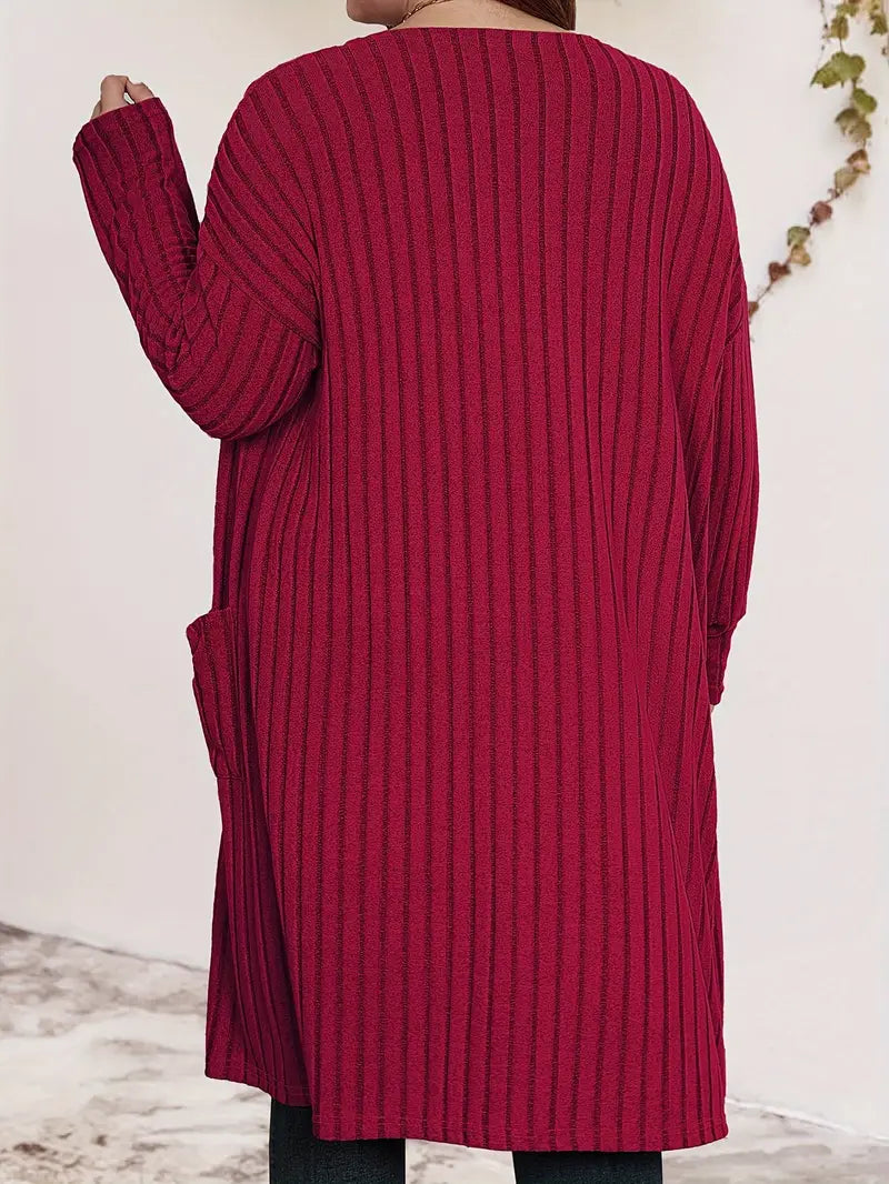 Plus Size Ribbed Open Front Knit Top Long Sleeve Spring Fall Women's Clothing