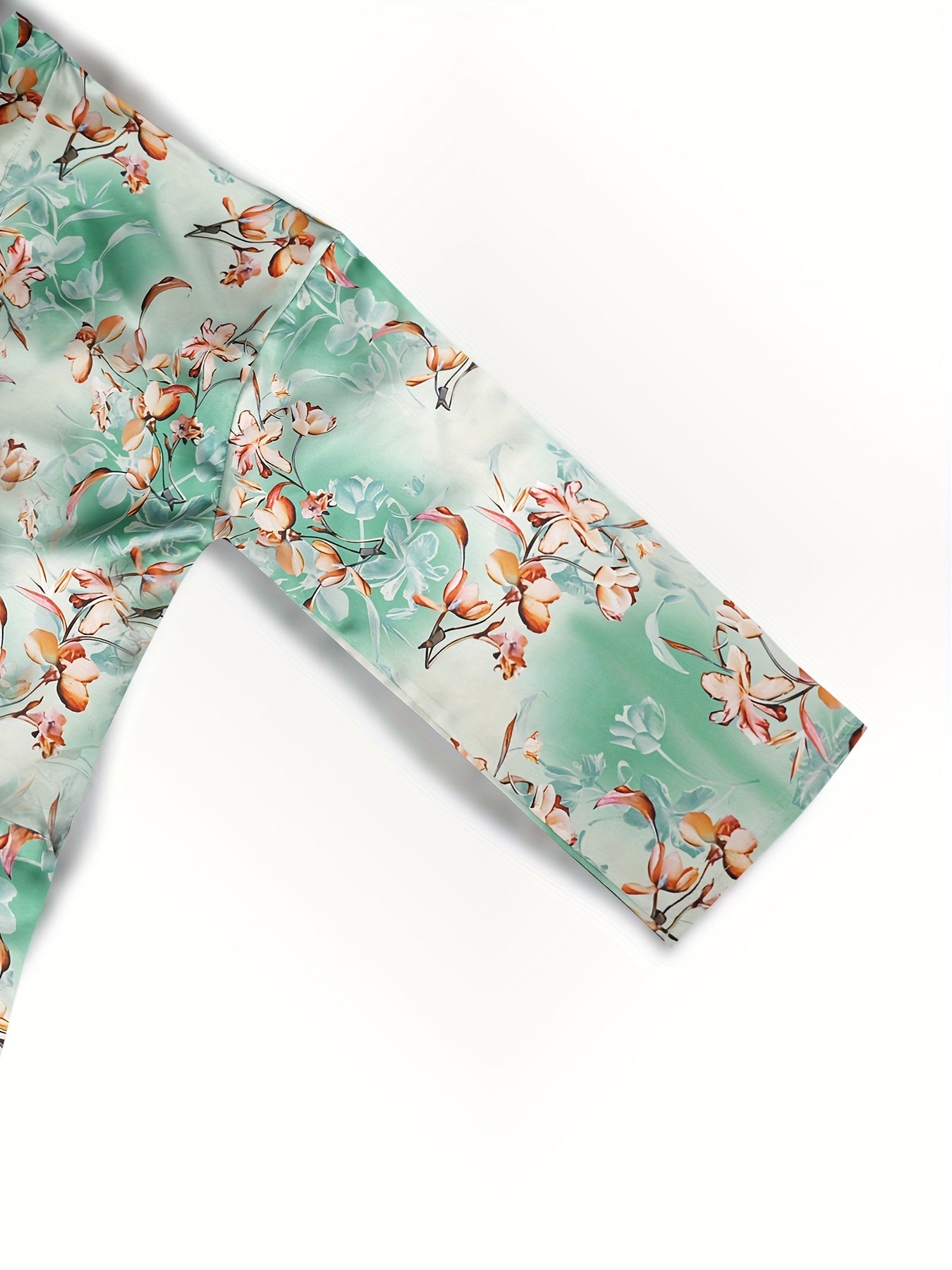Plus Size Satin Floral Lounge Robe Long Sleeve Open Front Nightgown